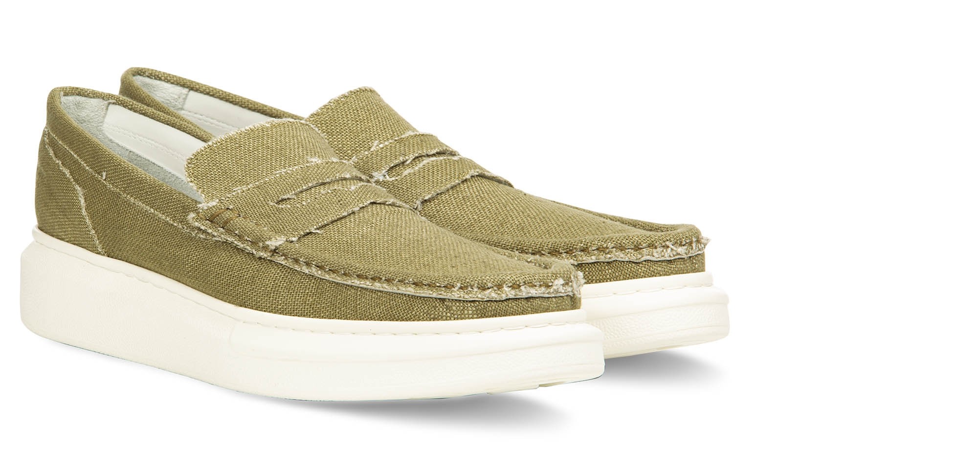 Innovation and elegance characterize this elevator model, the fruit of the mastery of the skilled GuidoMaggi artisans. It's a hybrid moccasin on a cream-coloured sneaker sole for a snappy but stylish look even in summer. The upper is in 100% natural green raffia, with super breathable white calfskin lining and tubular stitching. This exclusive elevator shoe adds up to 2.56" of extra height, always ensuring maximum comfort. Versatile, elegant and soft, it's a masterpiece of Made in Italy high craftsmanship.