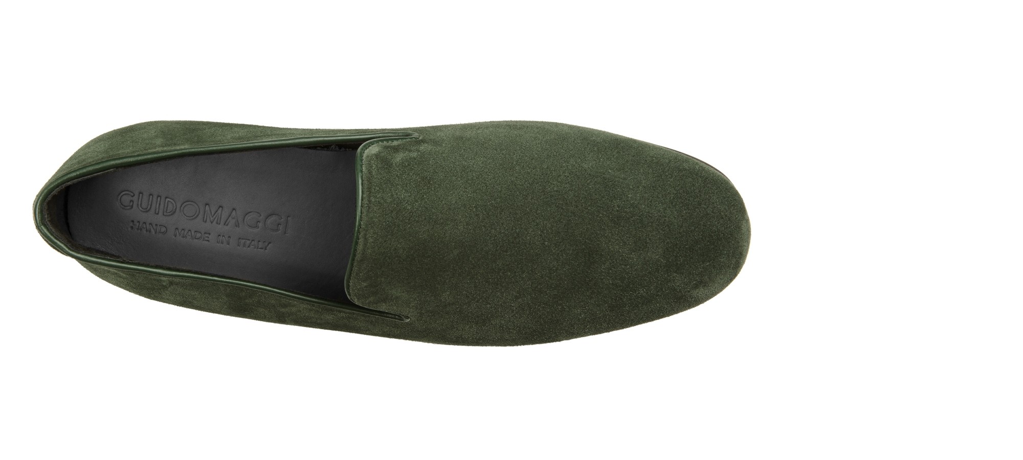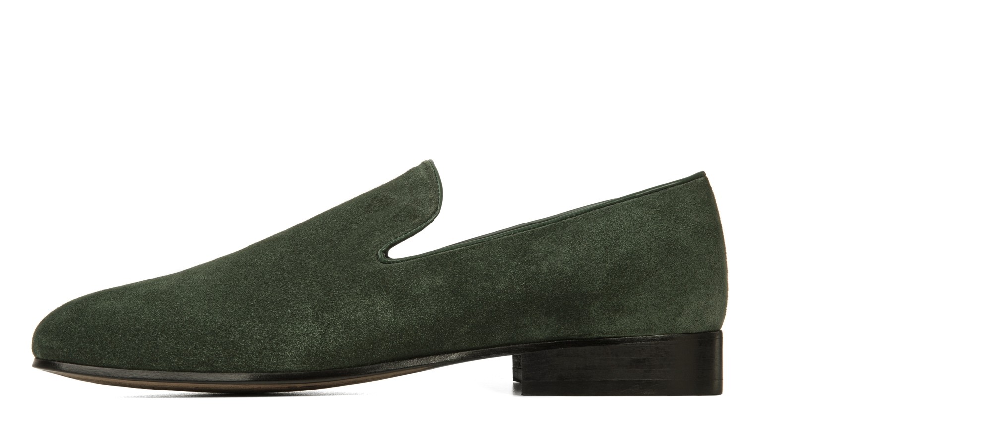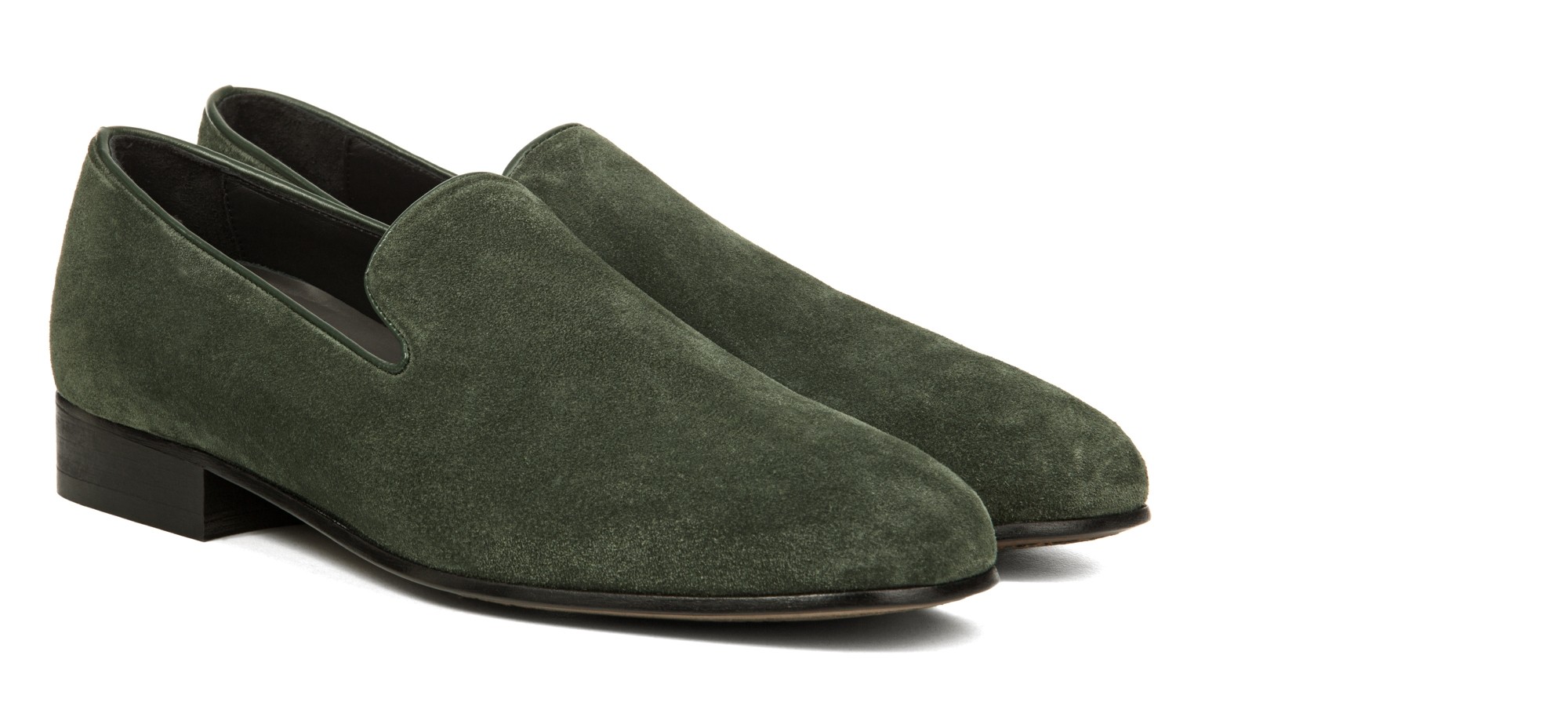 Elegant elevator loafer handmade in Italy with green suede upper. A fresh shade that evokes nature's awakening in spring. The inner lining is made of soft leather and stiched leather sole with anti slip rubber.