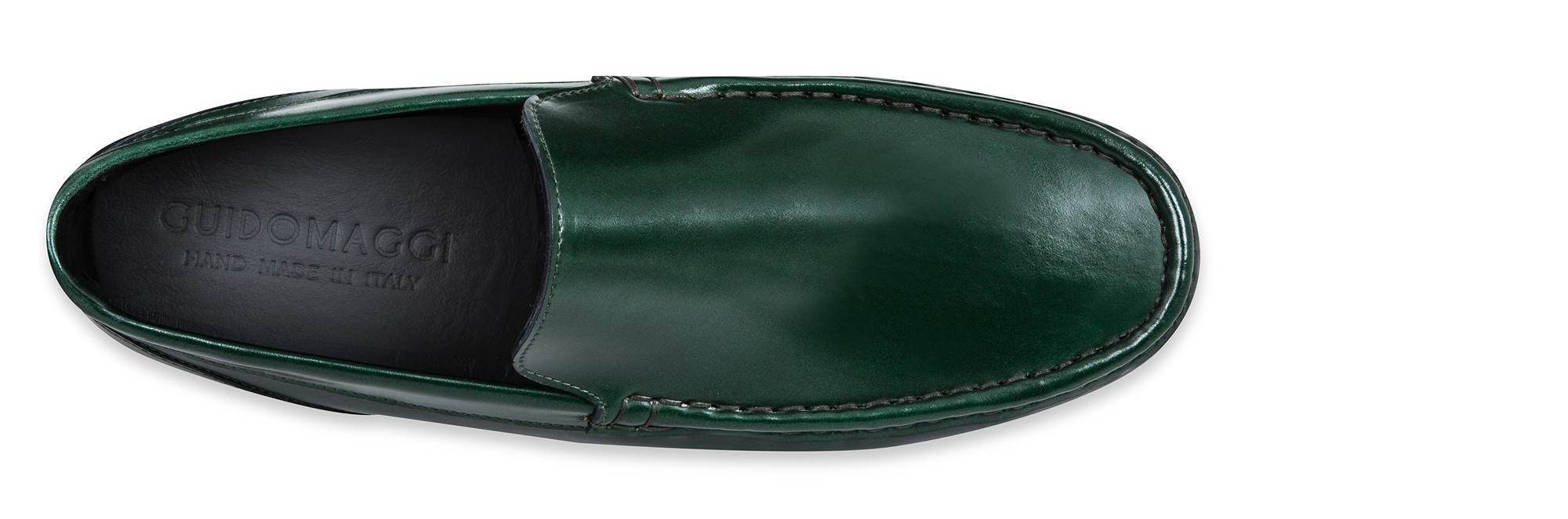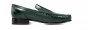 Luxury elevator loafers made of fine Shell Cordovan leather featuring a deep green color and Goodyear welted leather sole.