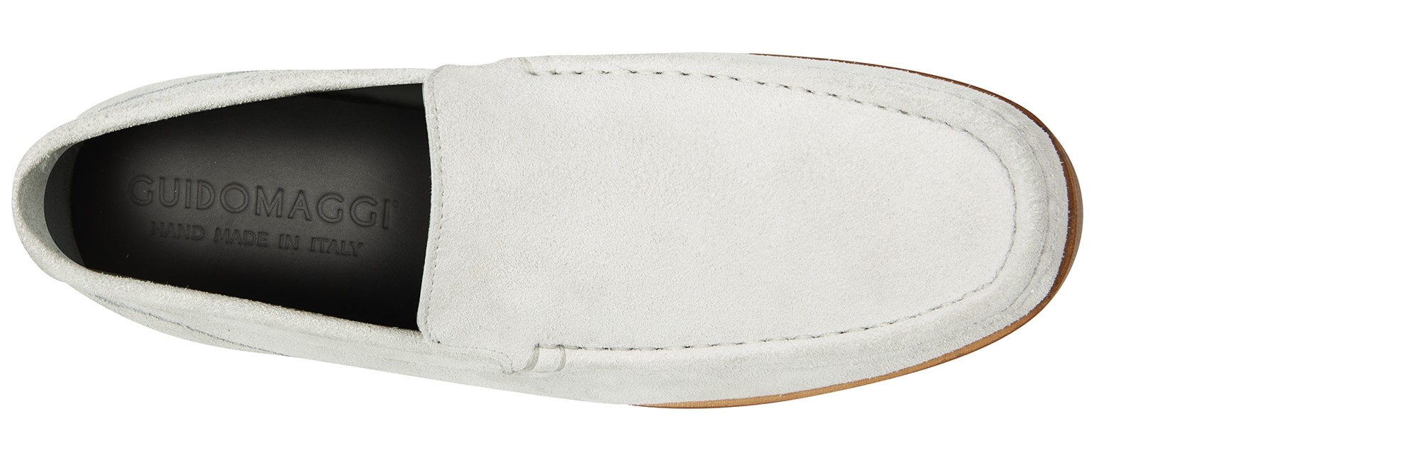 Upper in ice grey suede calf leather. Upper leather, outsole and midsole are sewn at sight. Insole and midsole in genuine leather. Leather heel with special anti-slip rubber. Handcrafted leather outsole with special anti-slip. Height increase: 2.6 in(6.5cm). Hand Made in Italy