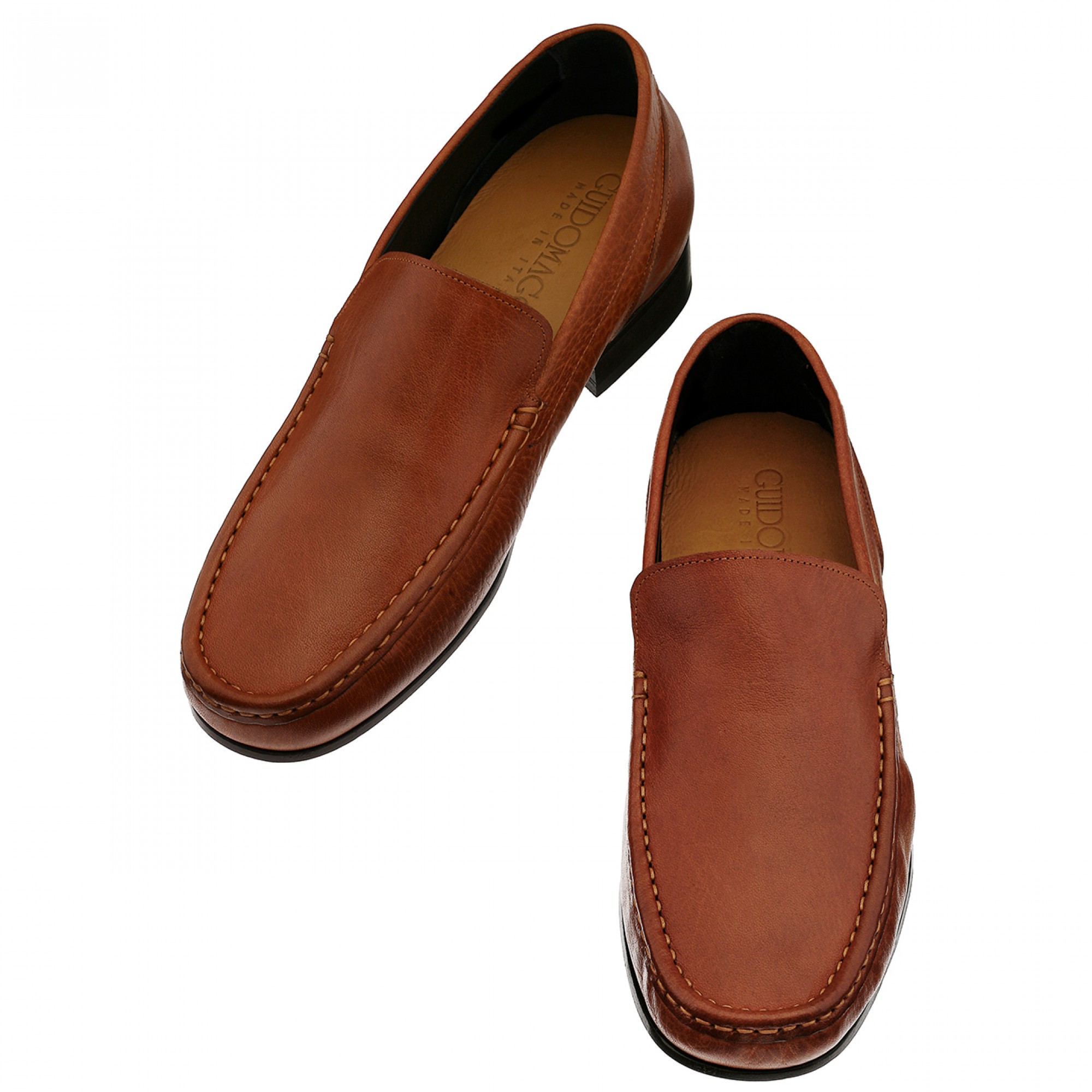 Add 2.6 inches extra in height thanks to this exclusive elevator loafer with hand-sewn upper in fine Cordovan leather of a characteristic dark cognac color and stiched leather sole with anti slip rubber.