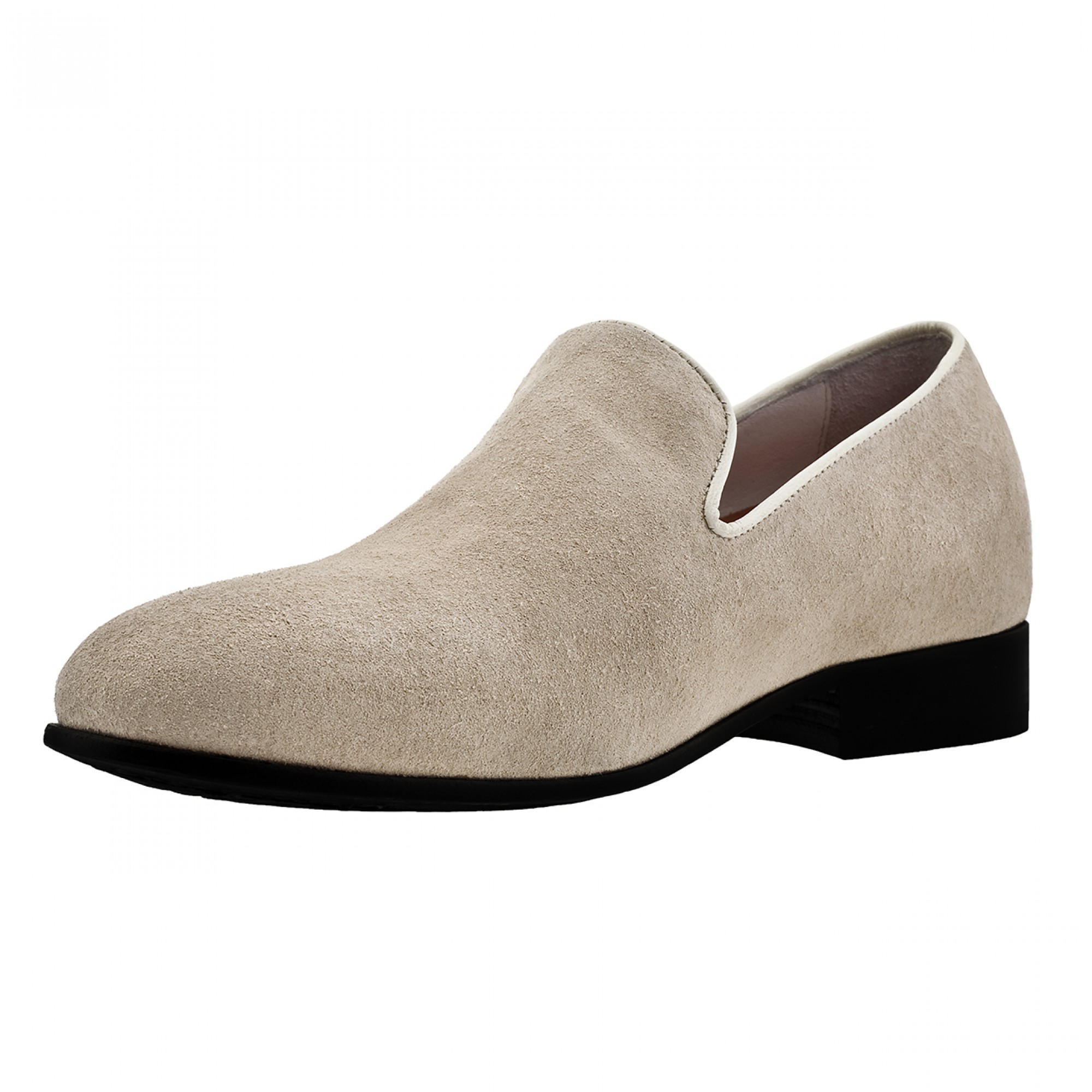 Upper in beige calf leather. Upper leather, outsole and midsole are sewn at sight. Insole and midsole in genuine leather. Leather heel with special anti-slip rubber. Handcrafted leather outsole with special anti-slip. Height increase: 2.2 in(5.5cm). Hand Made in Italy