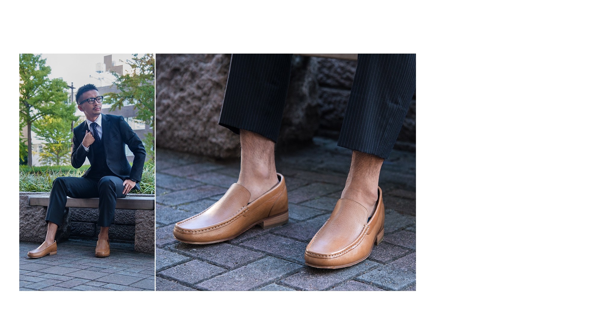 Elegant elevator loafer entirely handcrafted with upper in cognac crust calfskin leather hand-buffered and stiched leather sole with anti slip rubber.