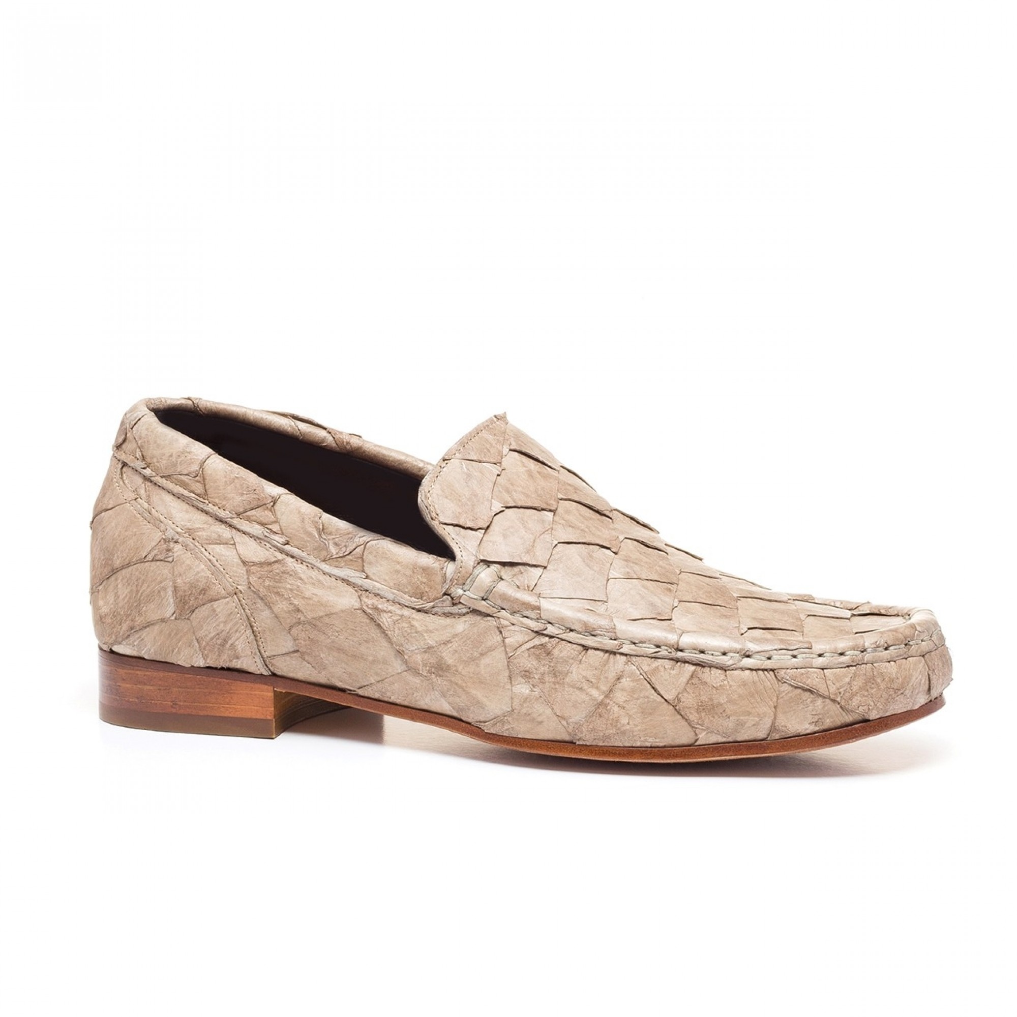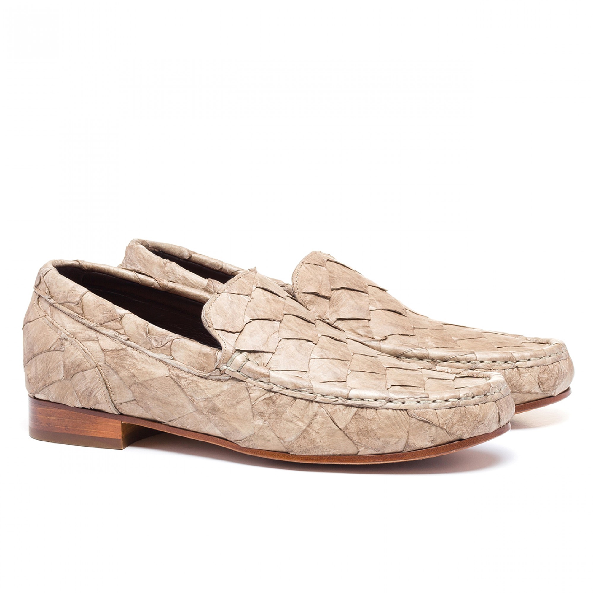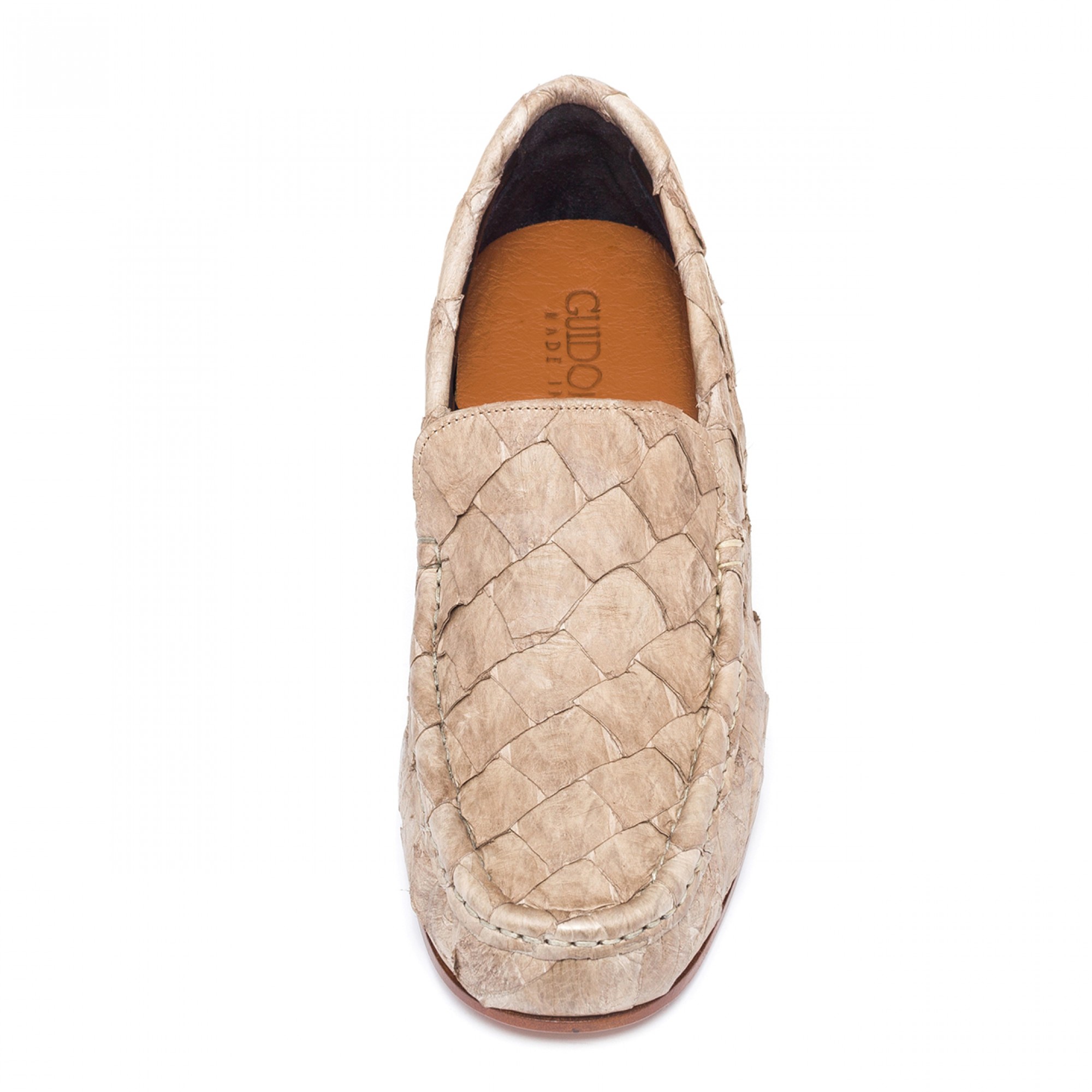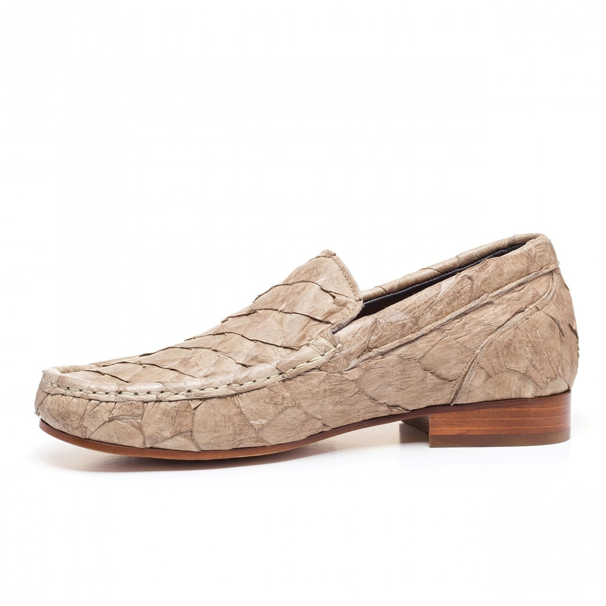 Extremely luxurious and elegant, the "Rua Garcia D'Ávila" are the latest prestigious loafers from the "exotic leather skins" Summer collection 2016 by GuidoMaggi. The upper, hand-sewn is made of noble Piracucu leather skin, special fish from the Amazon.