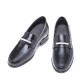 Chic and versatile elevator loafer, handmade in Italy, with upper in black semi-shiny calfskin, embellished with elegant tassels in gray full grain leather.