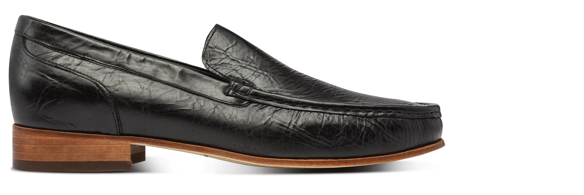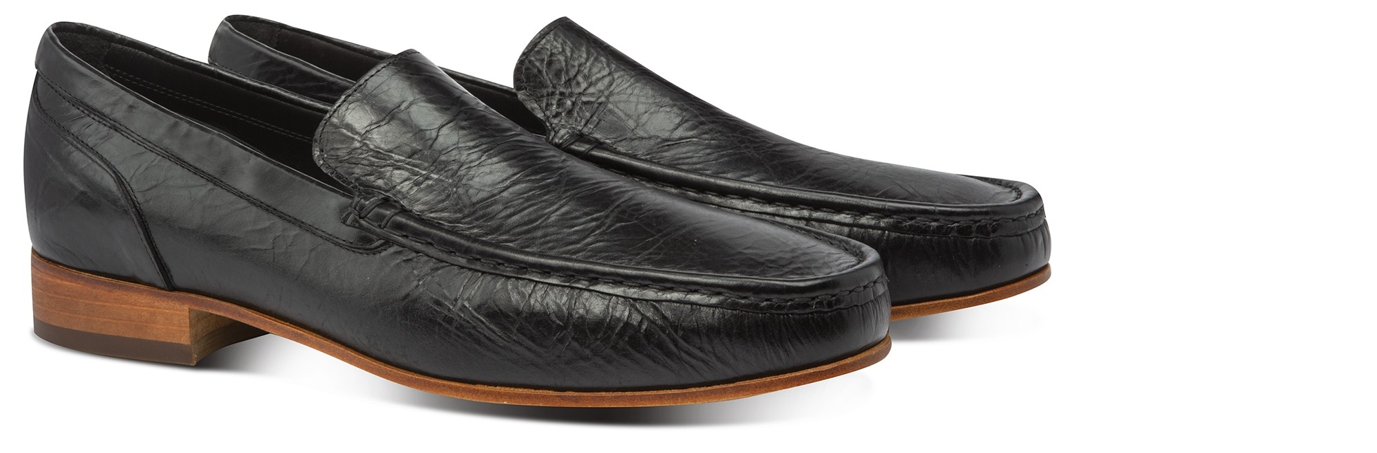 Classy height increasing loafers made of soft Tuscan nappa leather featuring a deep black colour and stiched leather sole with anti slip rubber.
