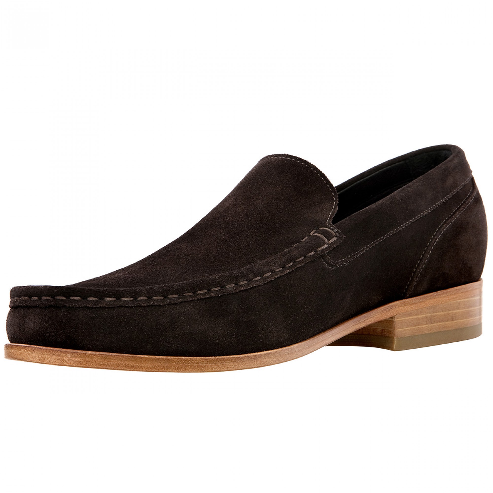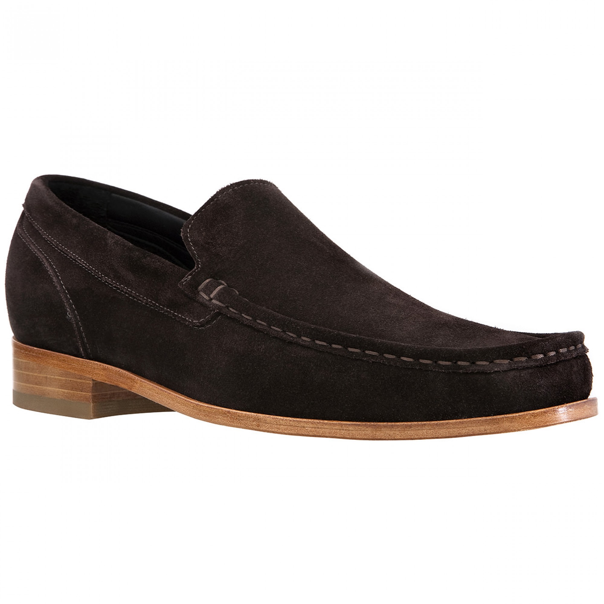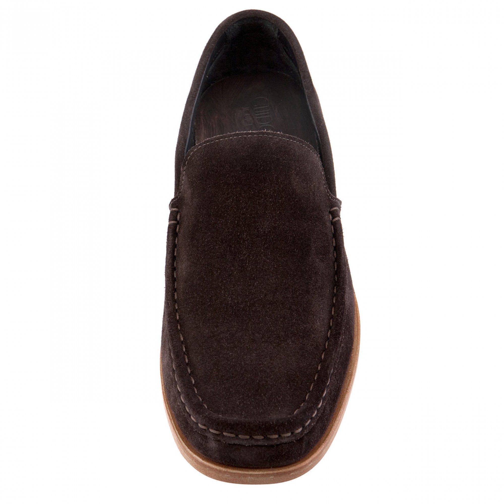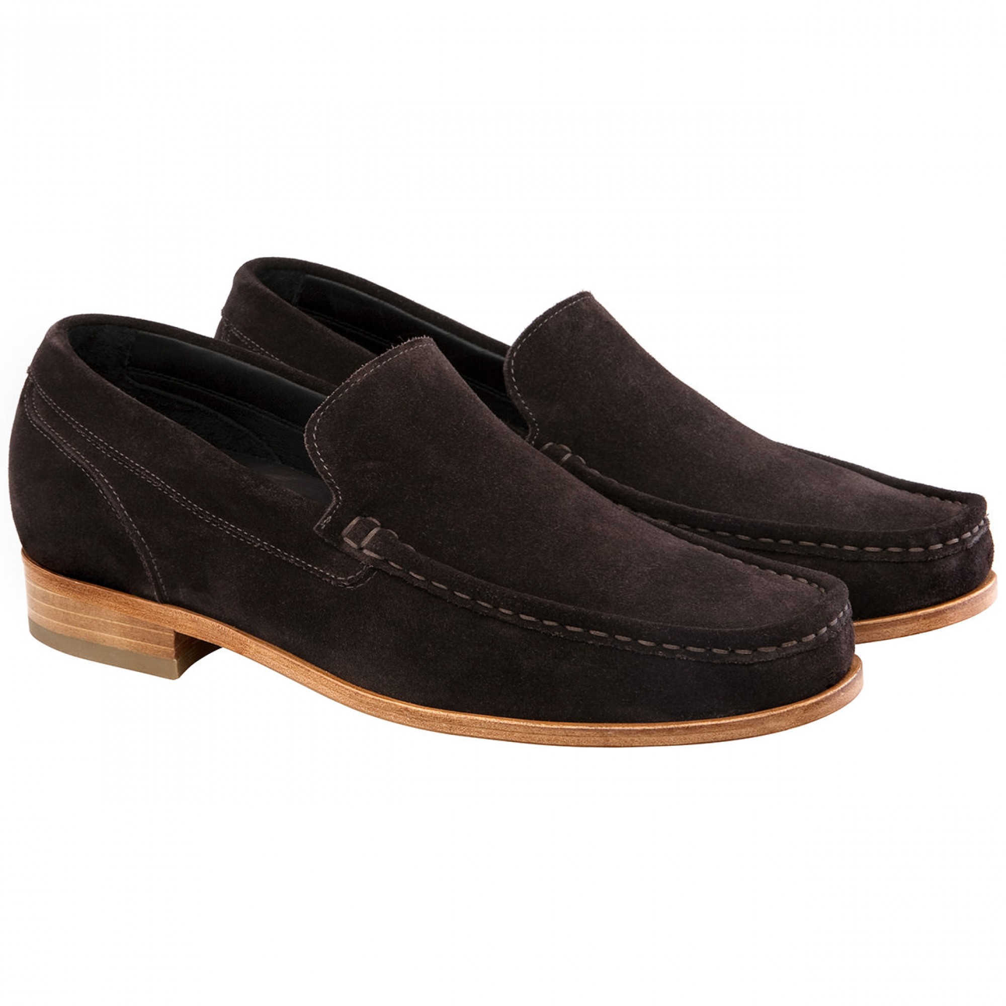 Upper in brown suede calf leather. Upper leather, outsole and midsole are sewn at sight. Insole and midsole in genuine leather. Leather heel with special anti-slip rubber. Handcrafted leather outsole with special anti-slip. Height increase: 2.6 in(6.5cm). Hand Made in Italy