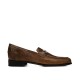 A modern reinterpretation of the classic elevator loafer with blue suede upper, elegant metal alloy clamp and tone-on-tone ribbed sole in super-light rubber.