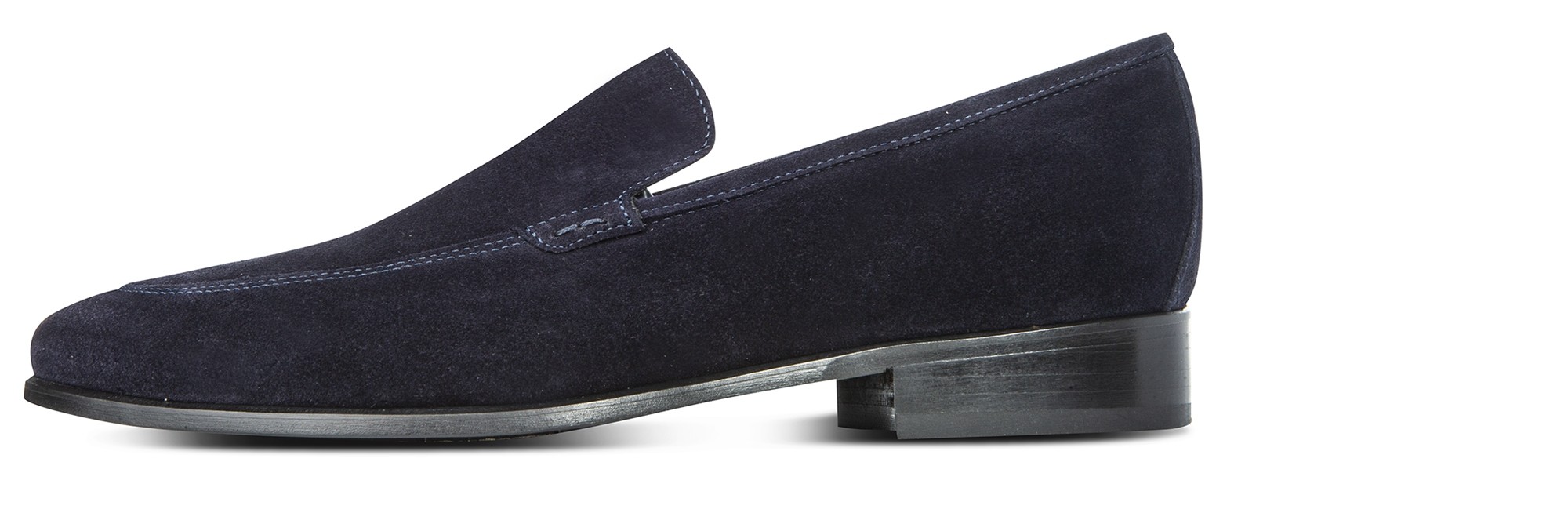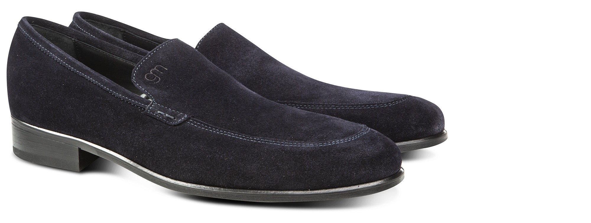 Elegance and simplicity: the perfect combination for this elevator loafer by GuidoMaggi. The upper is in soft navy-blue suede, warm and enveloping. With an exclusive tubular seam, the shoe features clean lines and minimal design and is ideal for the casual-chic outfits. It has a comfortable and discreet elevator system, which gives you up to 2.6 inches (6.5 cm) of extra height. Handcrafted and custom made, 100% made in Italy.