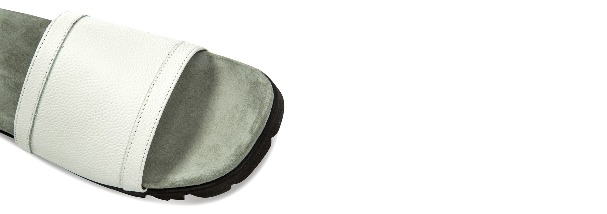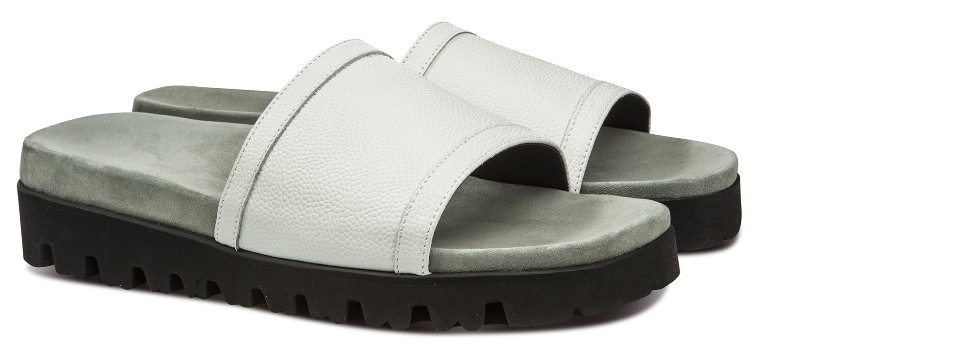 The Acapulco are luxurious sandals in python print white calf leather with ergonomic and comfortable light gray leather covered insole.