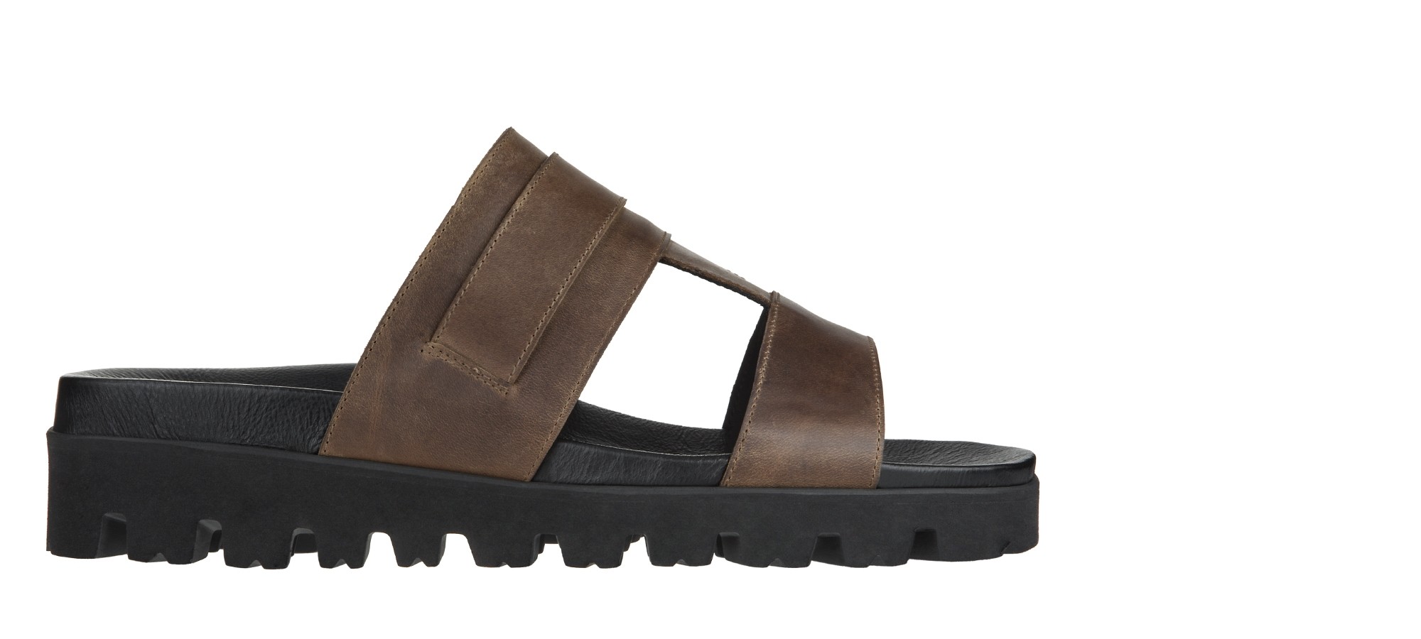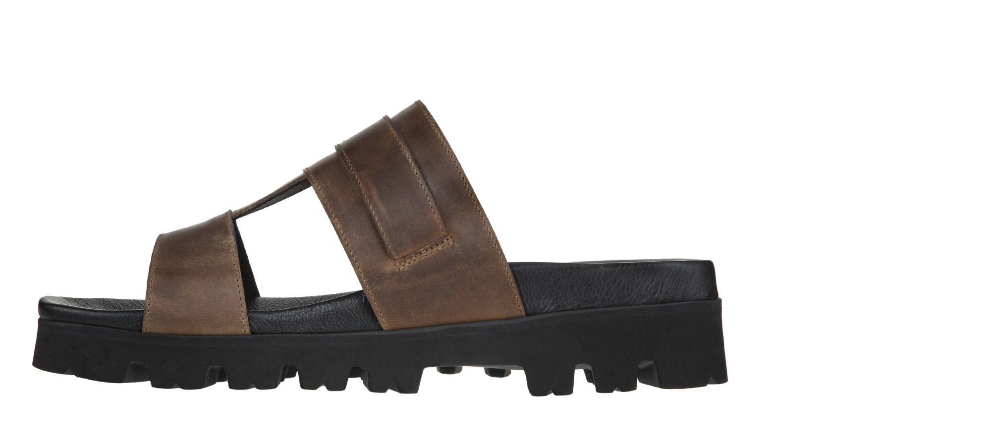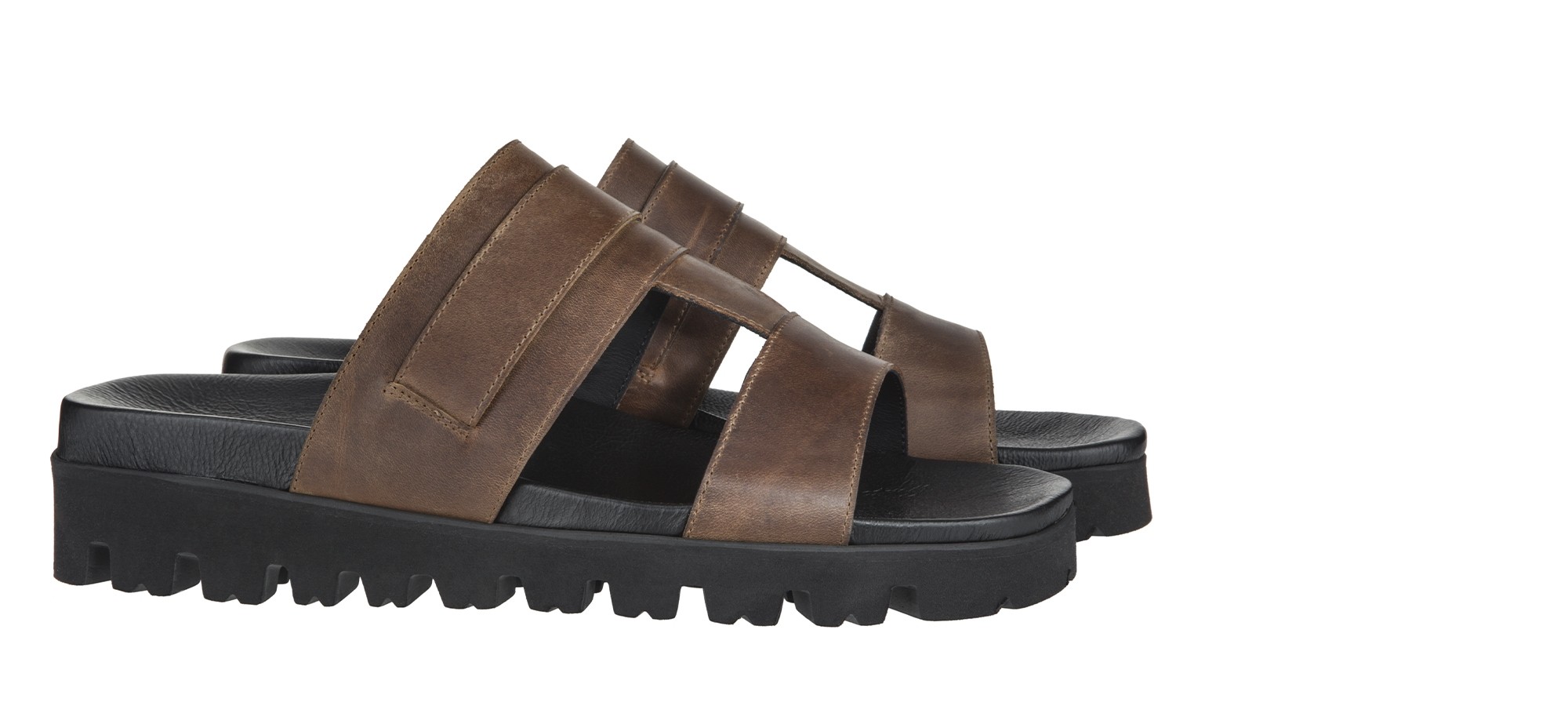The GuidoMaggi elevator sandal combines elegance and comfort. This version features a double band in Tuscan leather, with a warm brown tone and an attractive worn effect. It's ideal for matching with a pair of Bermuda shorts, jeans or linen trousers. Ergonomic footbed and notched sole in super light natural rubber. The model offers up to 1.96" of extra height in total comfort and discretion. 100% made in Italy.