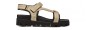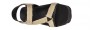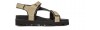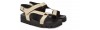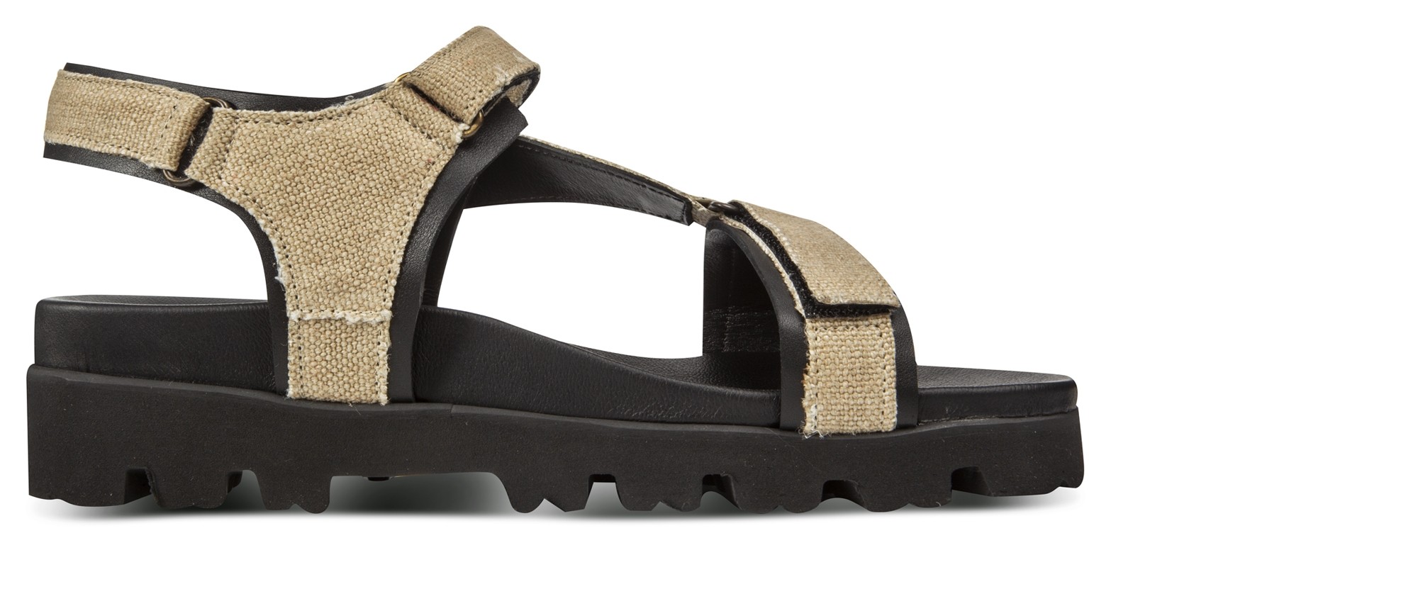 Elevator sandals made of velcro and soft beije raffia straps and comfortable leather-covered insole.