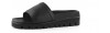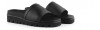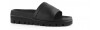 Handcrafted elevator sandals with upper in black full grain leather, lightweight tank tread sole in natural rubber and comfortable leather-covered insole.