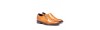 Stylish and luxurious dress shoes with upper in cognac calfskin, hand-buffered featuring particular side lacing. A handcrafted wholecut shoe with a modern design. The real leather sole is sewn at sight.
