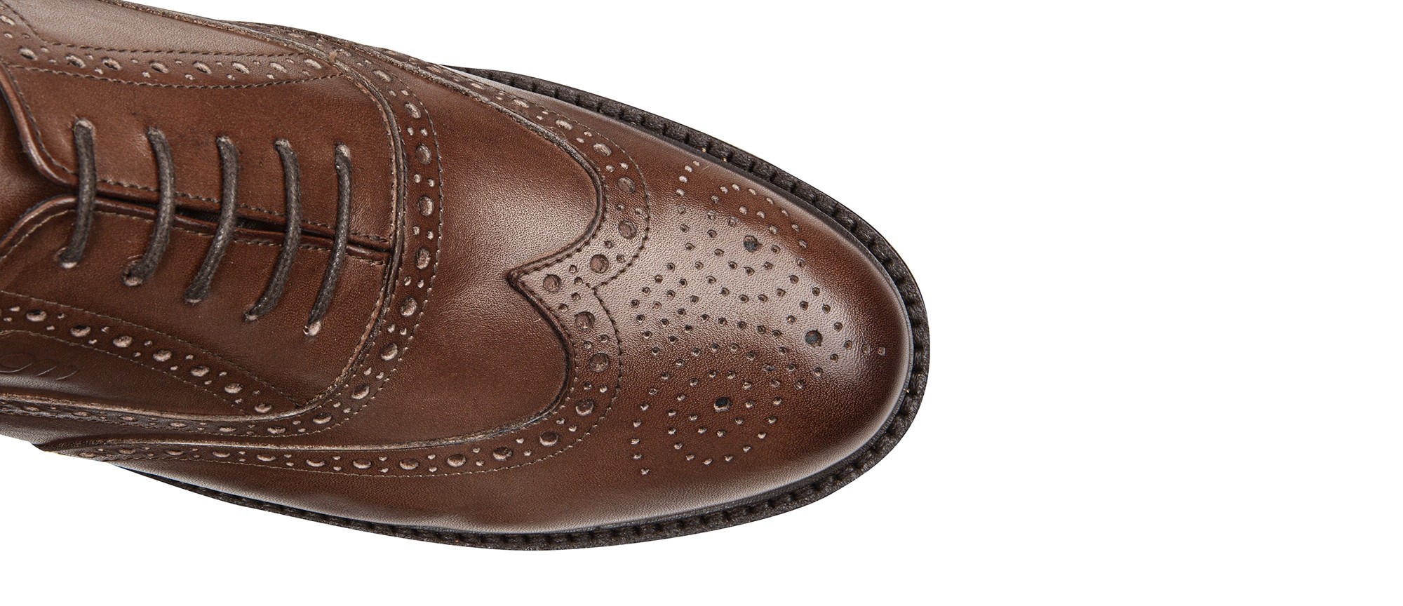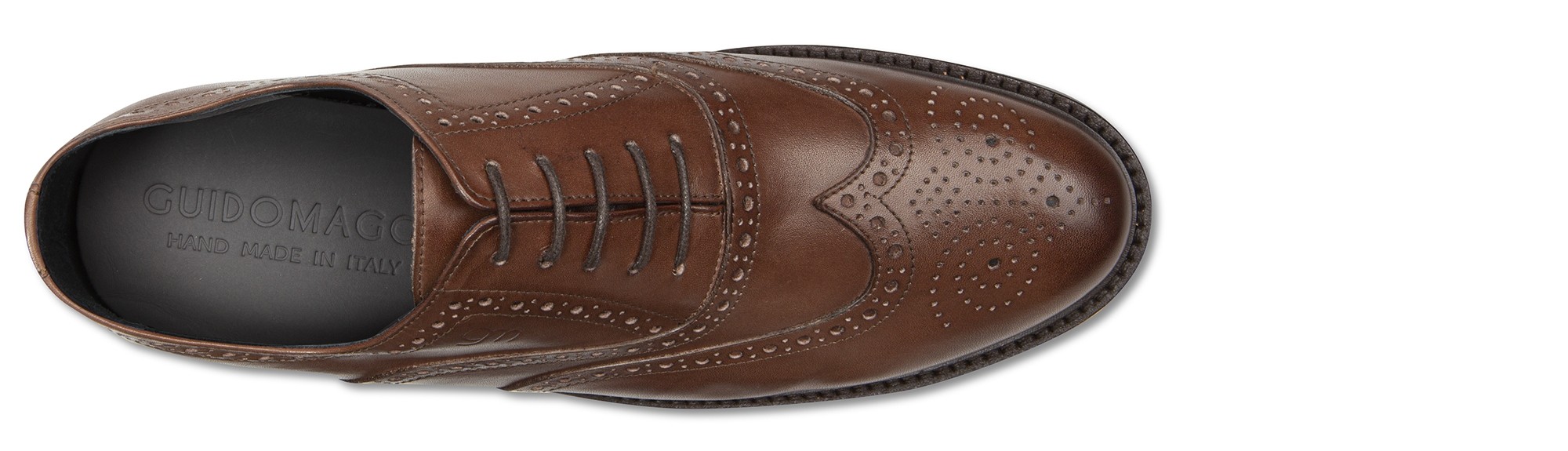 An elevator Francesina from the new GuidoMaggi collection, embellished by the English brogue, dovetail and flower on the tip. The stitching along the upper is expertly handcrafted to give craftsmanship and value to an iconic model that can't be missing from the wardrobe of the true contemporary gentleman. The elevator shoe is in leather, with a sophisticated shade of walnut brown. Extremely elegant, they are perfect to complete and enhance both casual and more formal looks. Featuring a leather sole with a lifting system adding up to 3.1" of extra height. 100% Made in Italy.