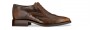 Exclusive elevator oxford shoes with upper in caramel brushed shiny calfskin featuring hand-punched decorations and genuine leather sole stitched at sight, with anti-slip rubber.
