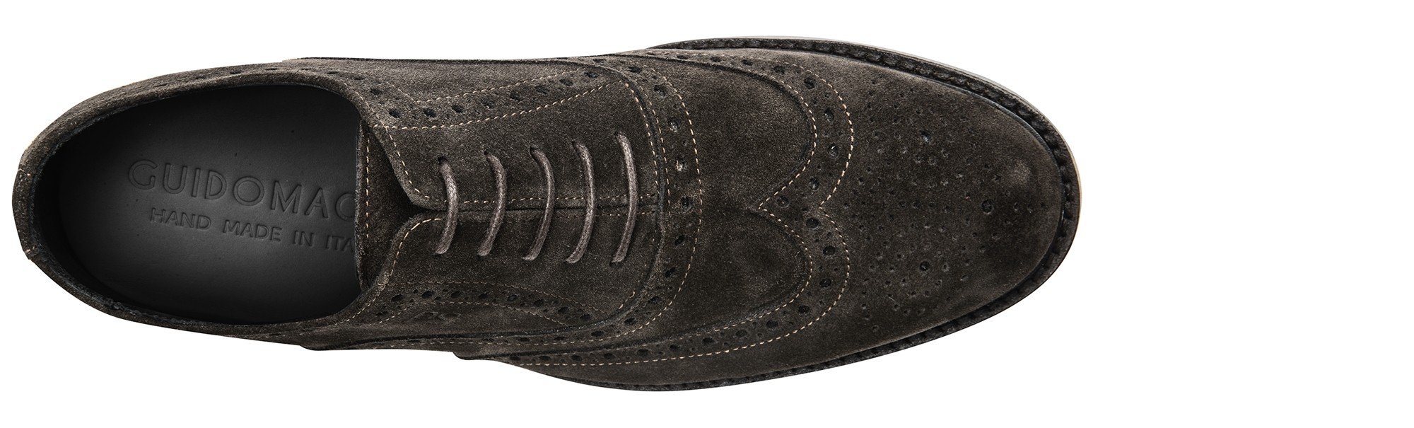 Elegant elevator dress shoes with a contemporary look. A great classic comes back to life in new and captivating forms, thanks to the skills of the GuidoMaggi artisans. The upper, in suede calfskin, is handmade with tone on tone stitching that embellishes the model and enhances its British charm. The sole is in real leather with anti slip rubber. A shoe with plenty of character, it can increase the height of up to 3.1" (8 cm) , in total comfort and discretion. 100% Handmade in Italy.