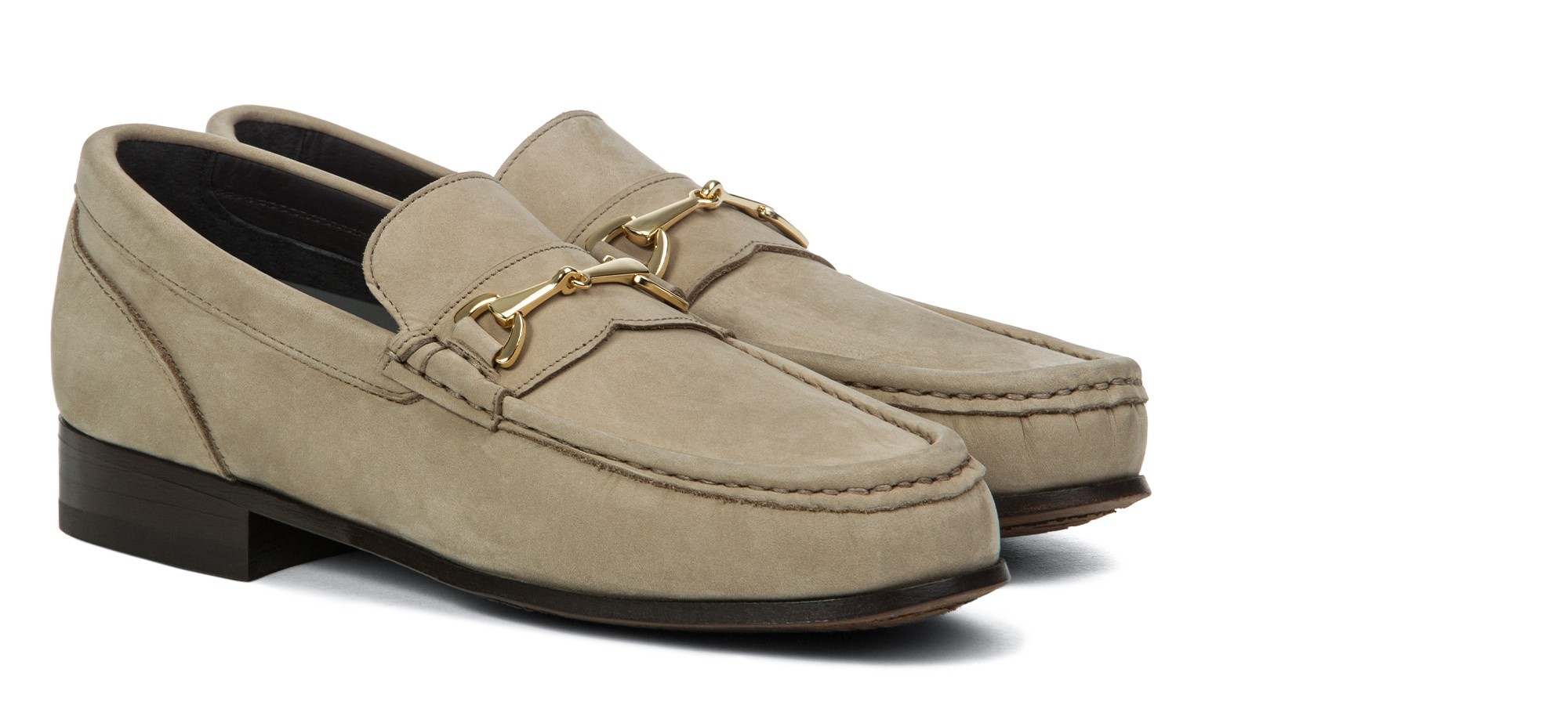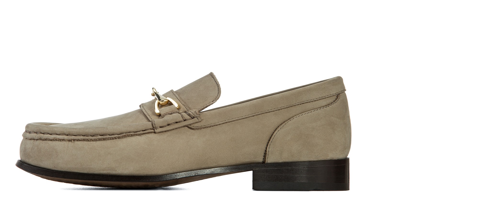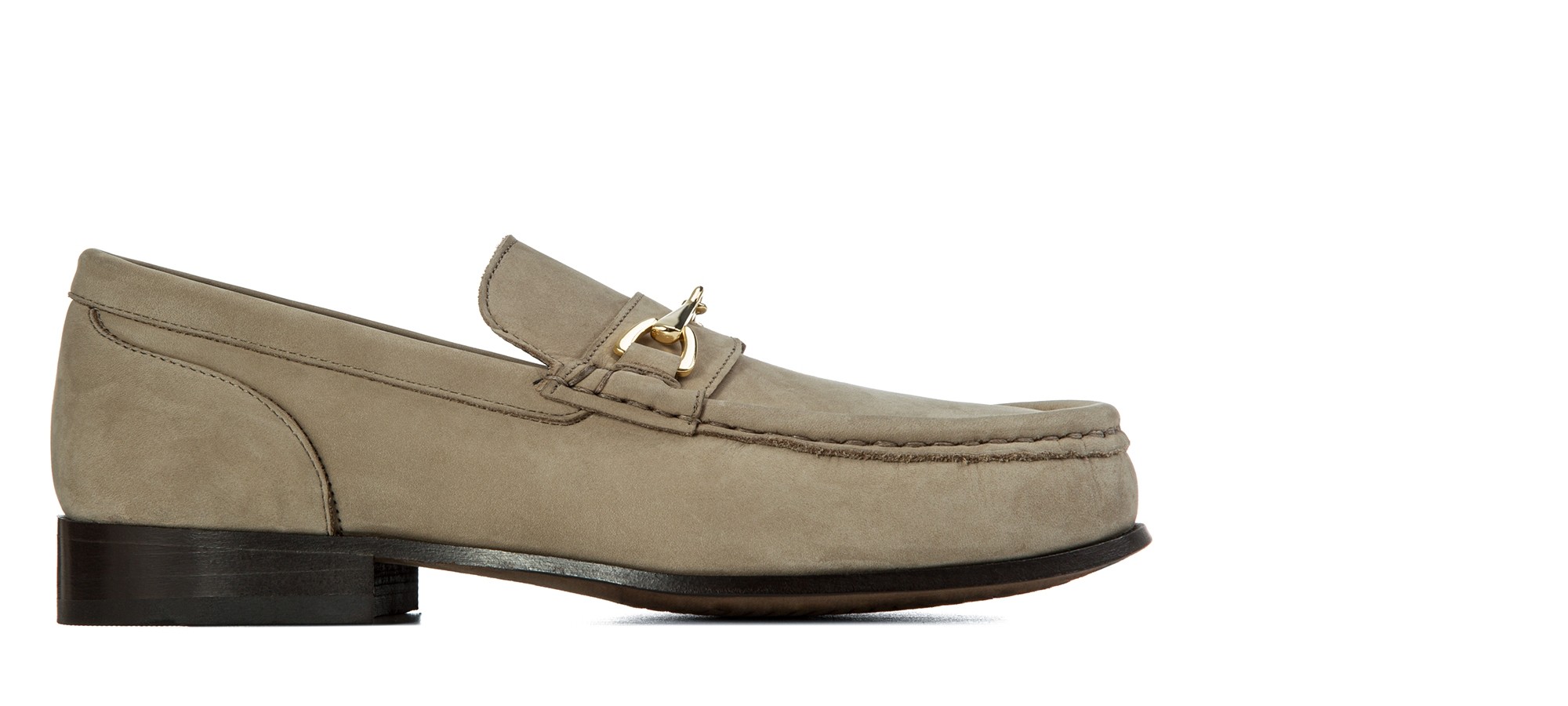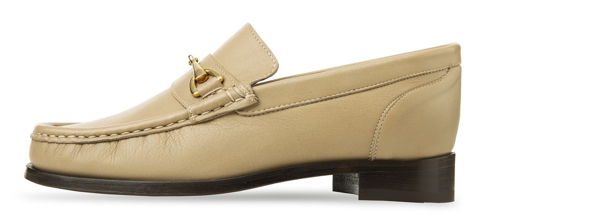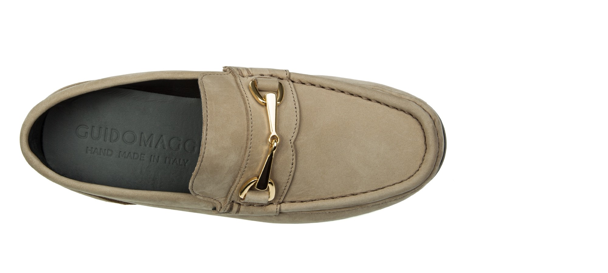 An exclusive evolution of the classic moccasin. The GuidoMaggi elevator penny loafer is handmade and has a full-grain leather upper in shades of light beige and a dark brown, 100% Italian leather sole. Embellished with the gold clamp, it has matching stitching. The moccasin with elevation has a lifting system that adds up to 2.56" more height to be taller without giving up elegance and style.