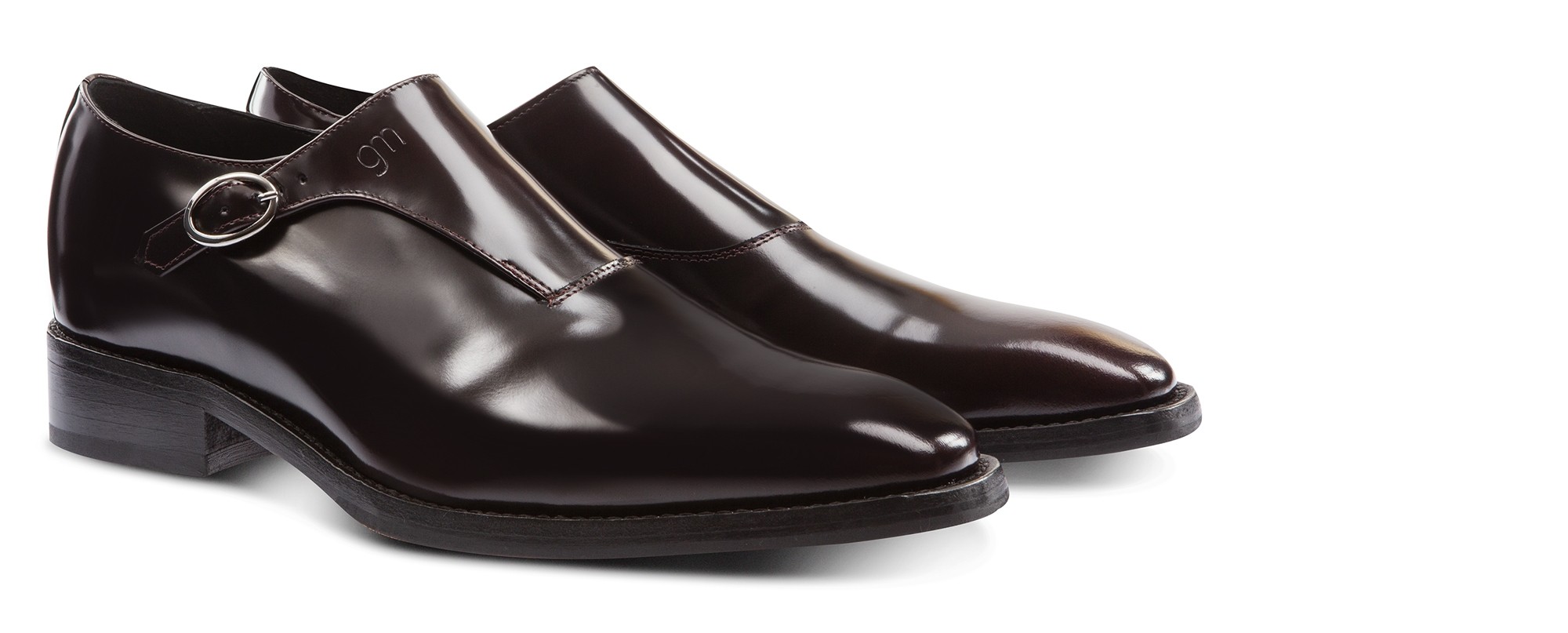 Elevator monk strap shoes, with upper in polished calf leather in an attractive dark burgundy color and leather sole with anti-slip rubber.An elegant model that defines your style making it exclusive. Handcrafted, made to measure and customizable, it has a square toe that gives it even more character.