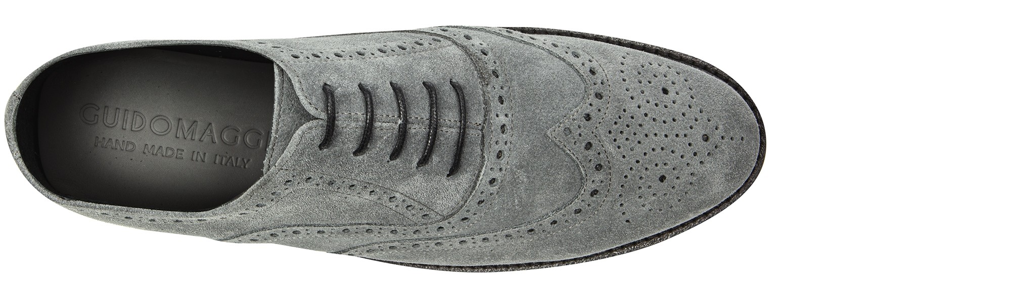 Elegant elevator dress shoes with a contemporary look. A great classic comes back to life in new and captivating forms, thanks to the skills of the GuidoMaggi artisans. The upper, in suede calfskin, is handmade with tone on tone stitching that embellishes the model and enhances its British charm. The sole is in real leather with anti slip rubber. A shoe with plenty of character, it can increase the height of up to 3.1" (8 cm) , in total comfort and discretion. 100% Handmade in Italy.