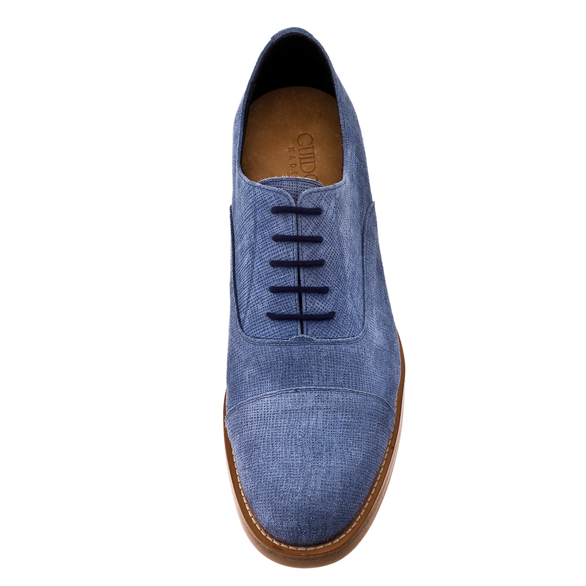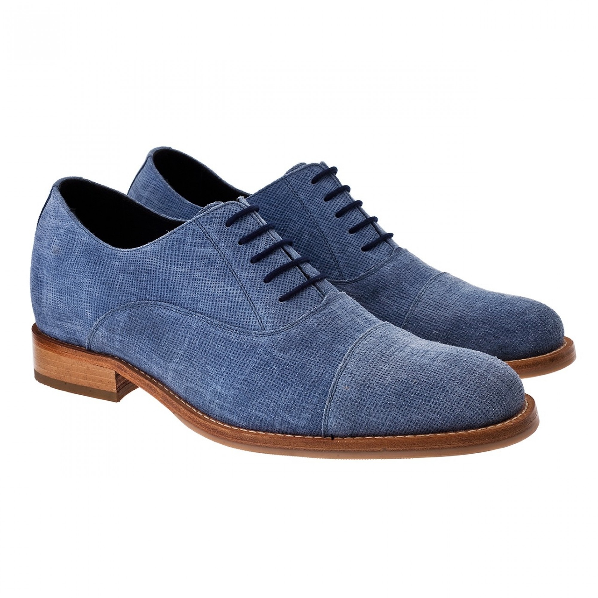Handcrafted upper in blue Epi leather. Lining in soft goatskin. Upper leather, outsole and midsole are sewn at sight. Insole and midsole in genuine leather. Leather heel with special anti-slip rubber. Cotton waxed shoe laces. Handcrafted leather outsole with special anti-slip rubber. Height increase: 2.4 in(6cm) or 2.75in(7cm) or 3.1in(8cm). Hand Made in Italy