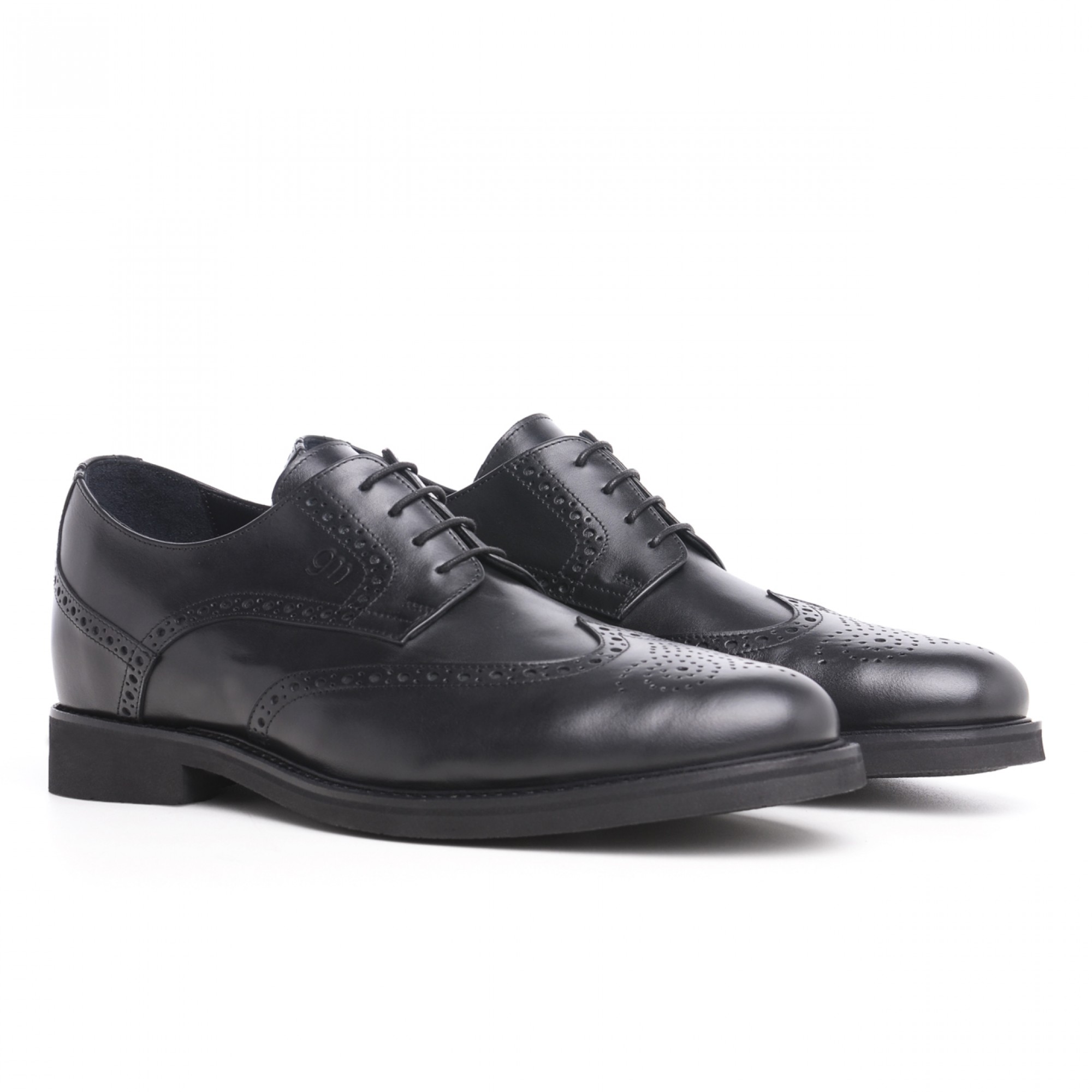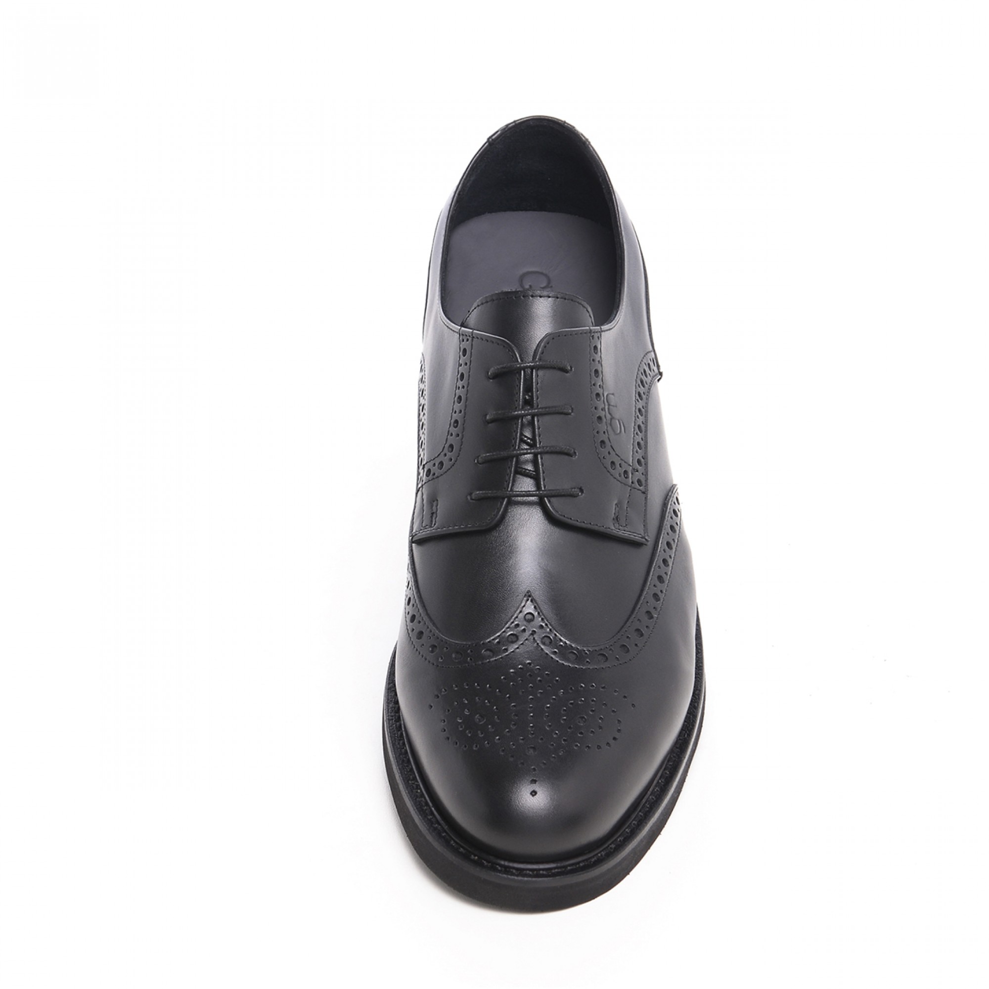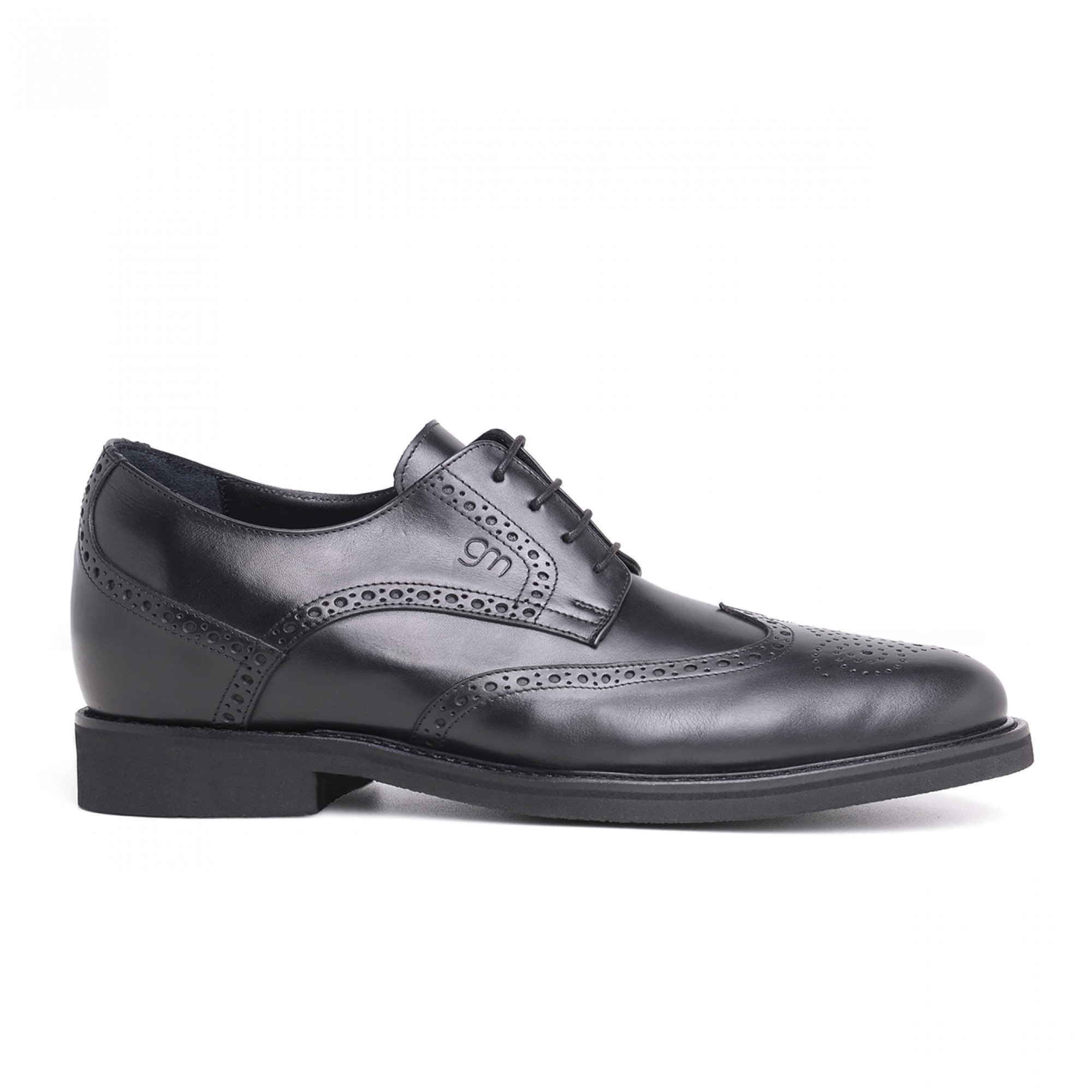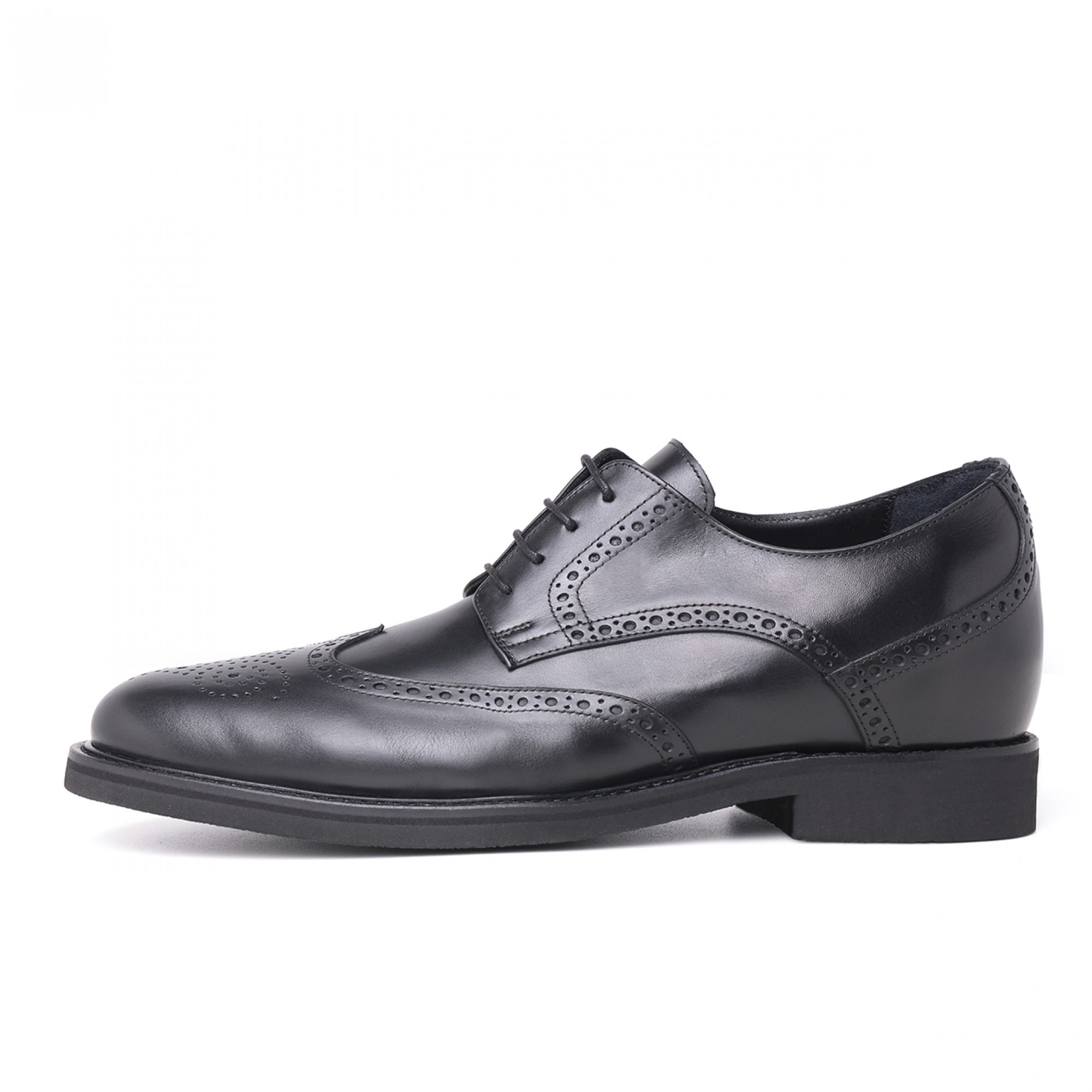Stylish elevator derby shoe with upper made of full grain Tuscany vegetable tanned leather, decorated by hand.