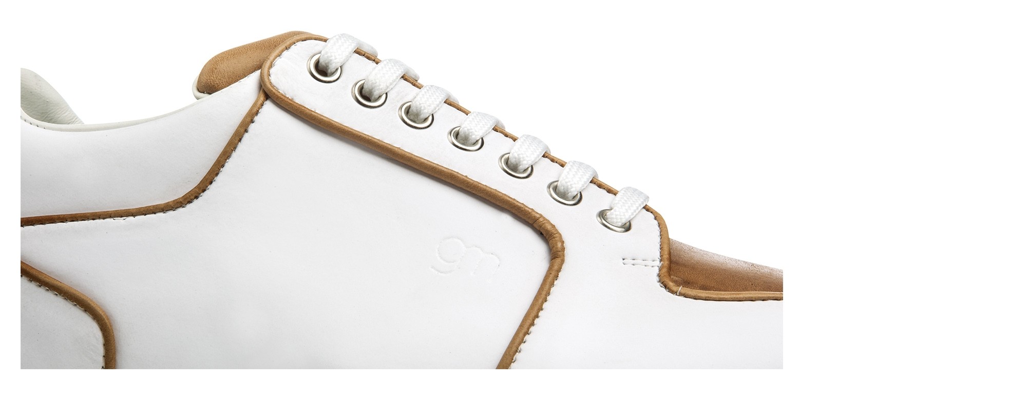 Dynamic and captivating, the new GuidoMaggi elevator sneakers for men are a masterpiece of style. The upper is made of soft rubberized white calfskin and brown vegetable tanned full-grain leather. A very springy and fresh elevator model, ideal for any casual chic outfit. The ultra-light and comfortable white sole is in natural rubber. Up to 3.1 inches (8 centimetres) of extra height in total comfort and discretion, 100% handmade in Italy.