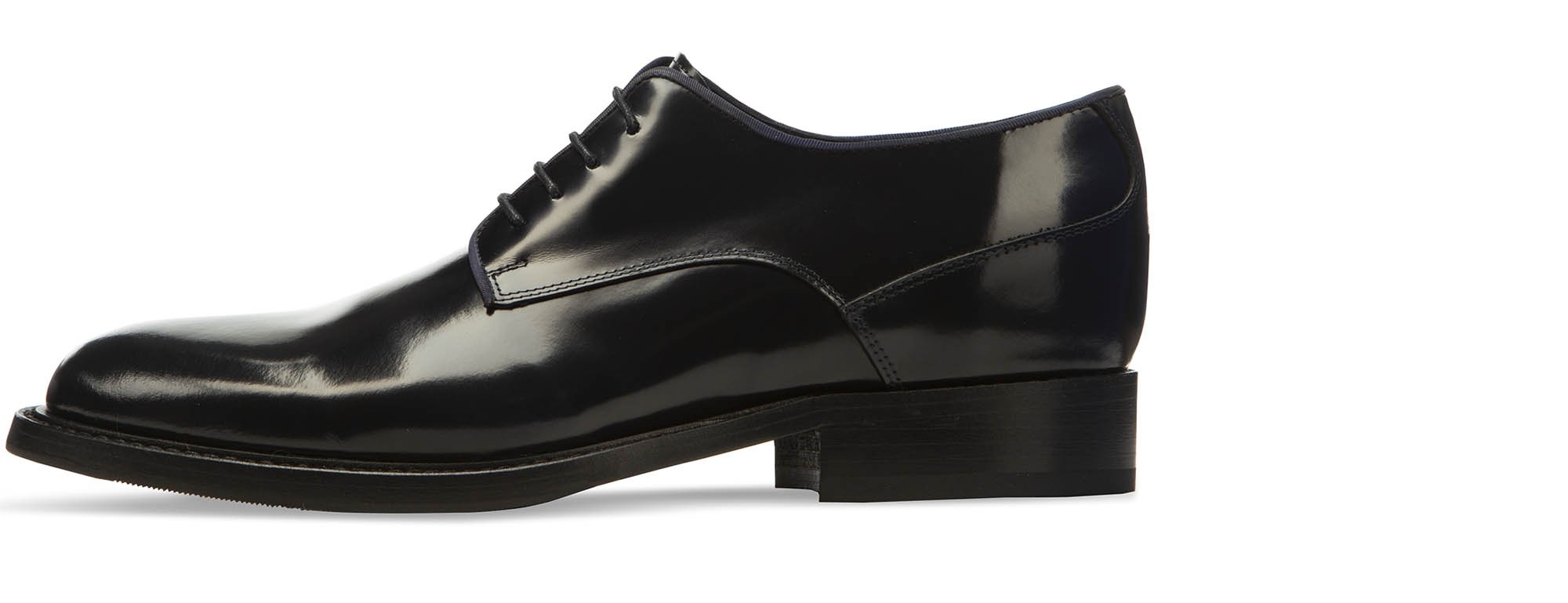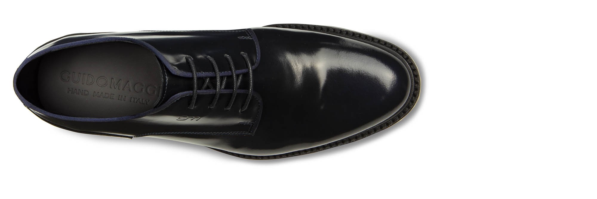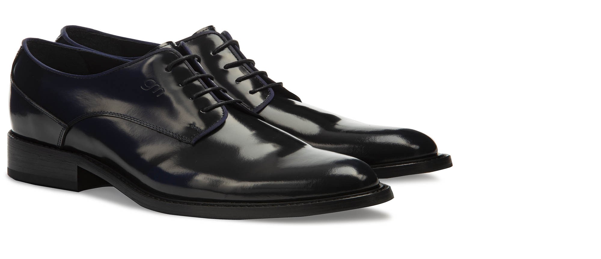 A classic, hand-stitched elevator derby, very elegant and with contemporary lines. A masterpiece of style and high craftsmanship, ideal for any grand occasion. The upper is in blue brushed, embellished with a sophisticated tone-on-tone fabric border. Round sole, in 100% Italian leather, with anti-slip. A shoe with a high-quality lifting system that discreetly adds up to 3.1" of extra height, ensuring maximum comfort. Handmade in Italy.