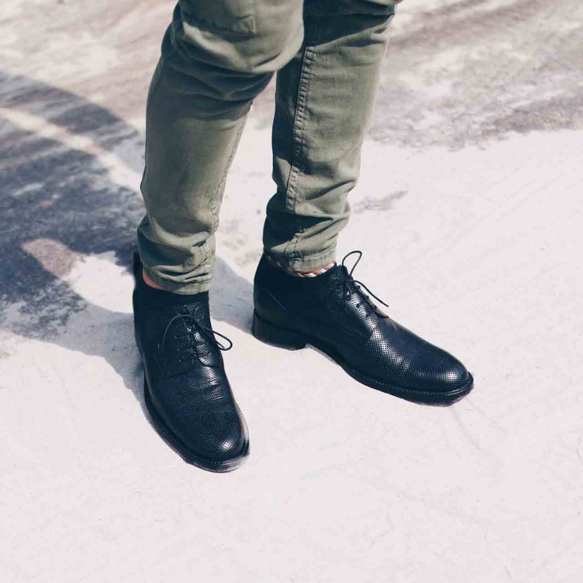 - Upper in full grain brogued Nappa leather and shiny black calfskin