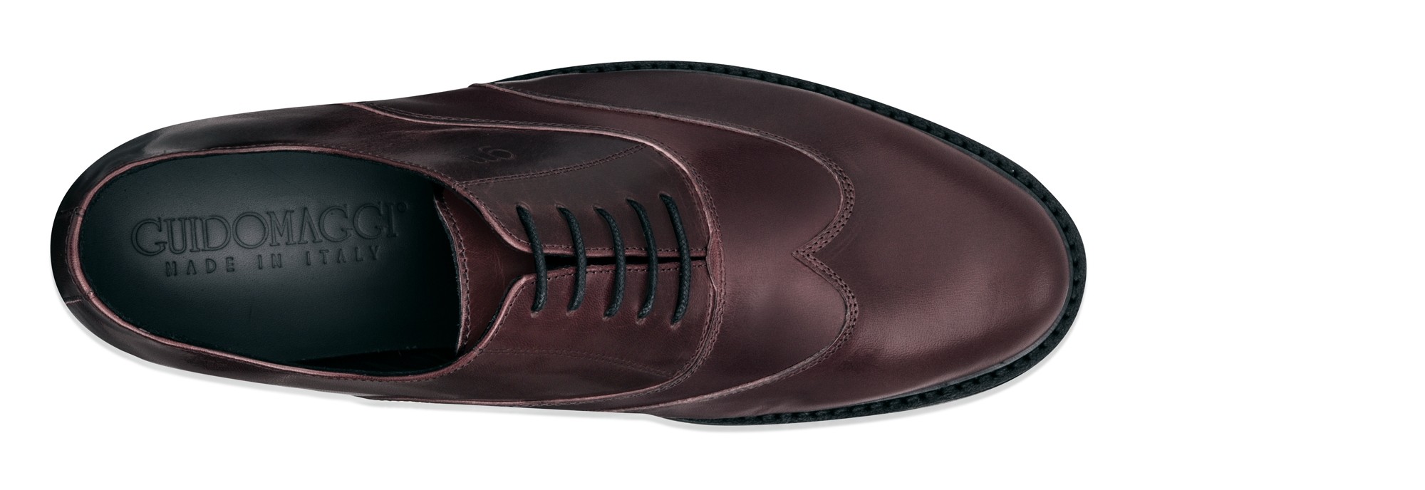 Goodyear welted elevator lace-up shoes with upper made of fine Shell Cordovan leather featuring an intence burgundy nuance, wingtip decoration and sole in genuine leather. Classy and chic Sevres is able to increase height up to 3.1 inches (8 cm) in maximum comfort. Handmade in Italy.