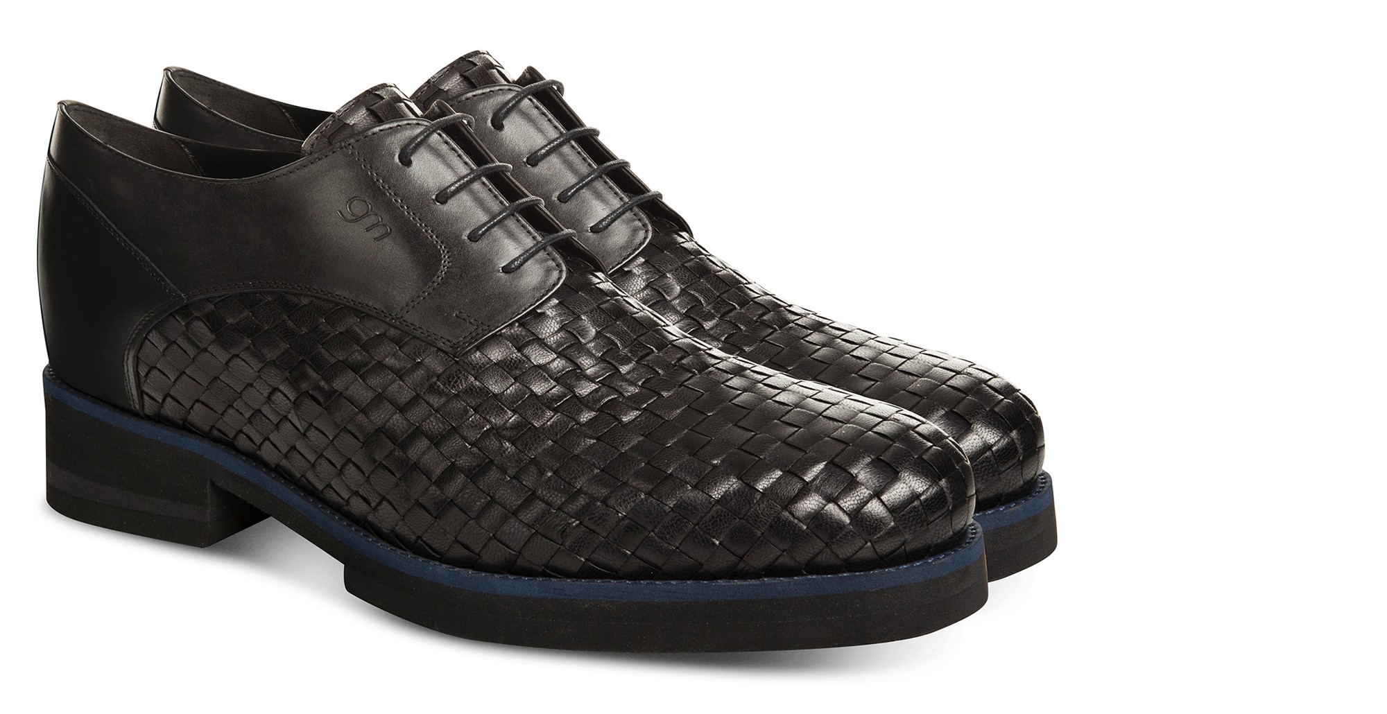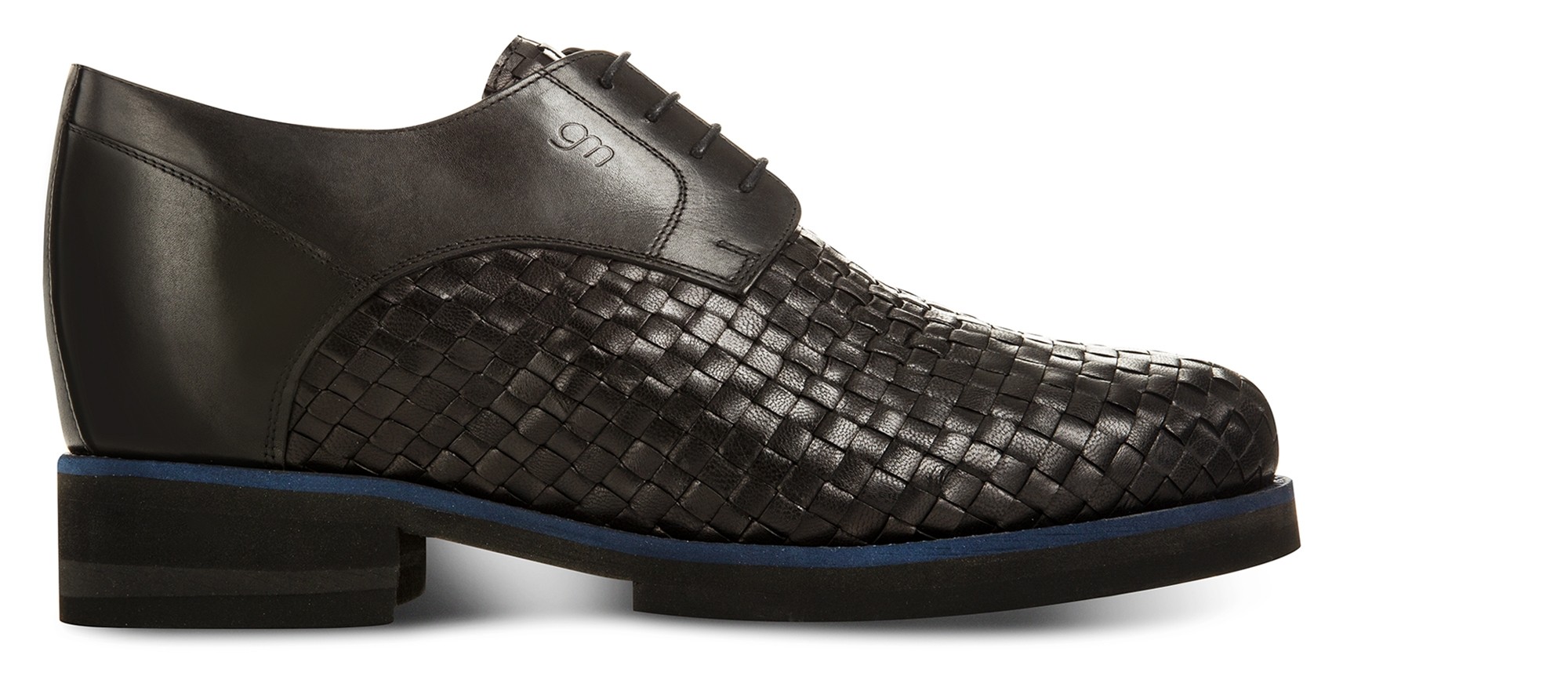 New generation of the GuidoMaggi derby elevator shoes, with a linear design and always enveloping nuances. This double-tone model, playing with different brown shades, is characterized by the upper in hand-woven full-grain leather in the front, while in the back is in smooth full-grain leather. Waxed laces,super-light micro sole with contrasting welt. Adding up to 12.5 centimetres (5 inches) to your height in total comfort and discretion, it's ideal for formal or casual chic outfits. Handmade in Italy.