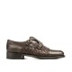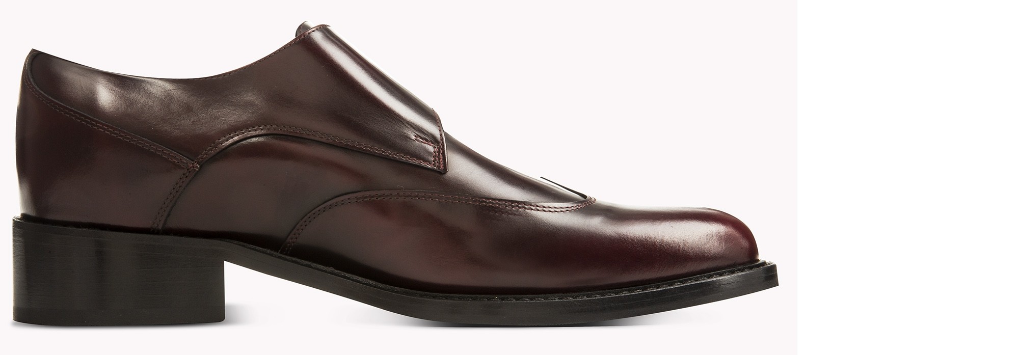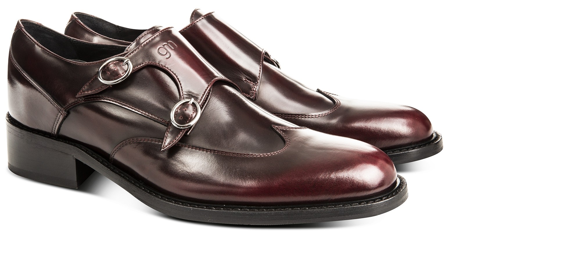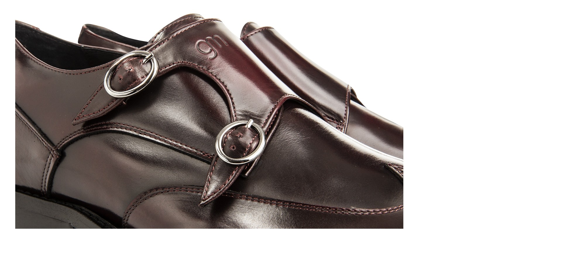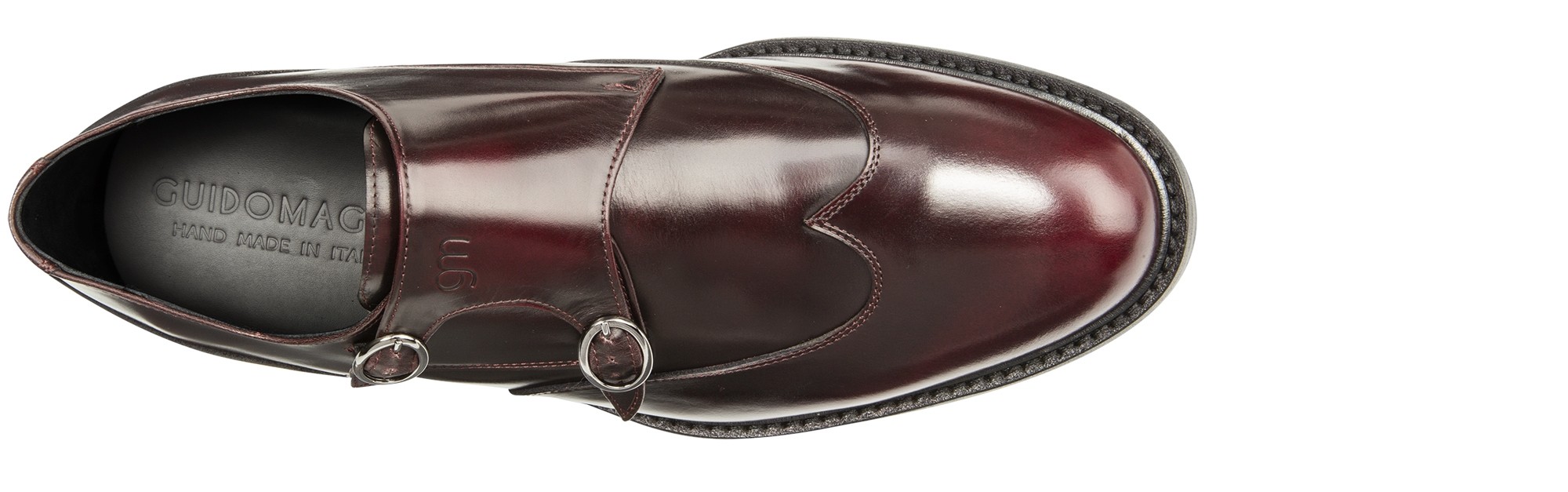 This new double buckle shoe from the GuidoMaggi spring-summer collection stands out for its character and refinement. A super glam elevator shoe, with curved lines, in brushed Bordeaux. Ideal for any outfit and any occasion, even the most formal ones. The buckle is nickel-coloured, and the sole in natural leather. It gives the wearer up to 3.15 inches of extra height, in total comfort and discretion. Handmade in Italy.