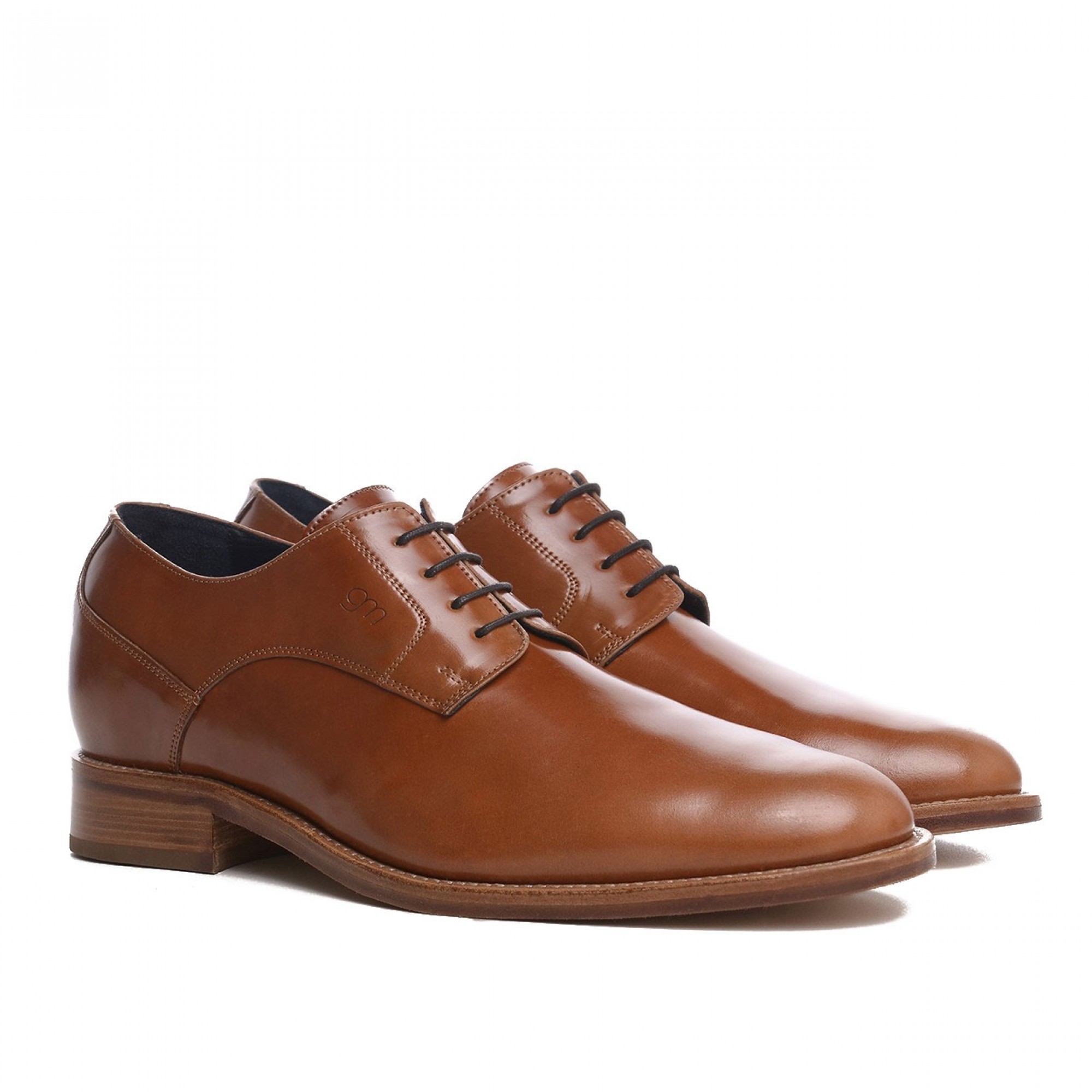 The genuine shell cordovan leather is the result of an accurate crafting of the equine's rarest and finest part. Channel stitched leather sole. A handmade dress shoe designed for a man of class that can increase height from 2.4 (6 cm) up to 3.1 inches (8 cm).