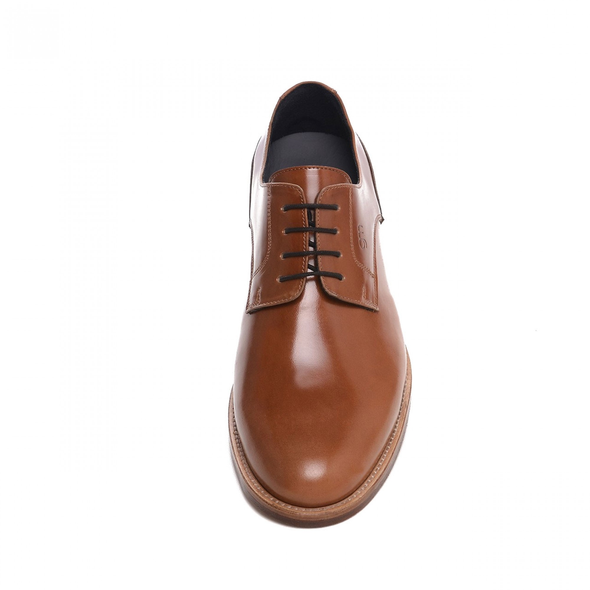 Elevator dress shoe with upper in brown shell cordovan leather characterized by its natural sheen which gives a unique and extremely elegant touch to any style.