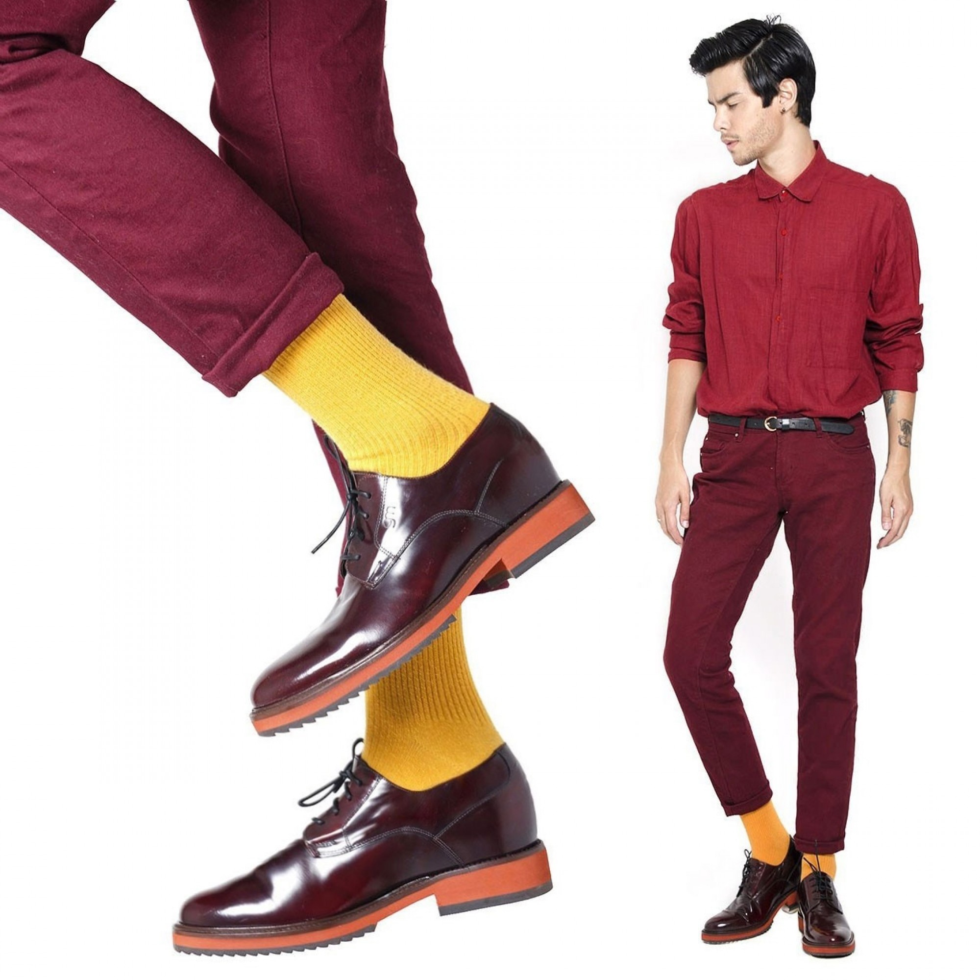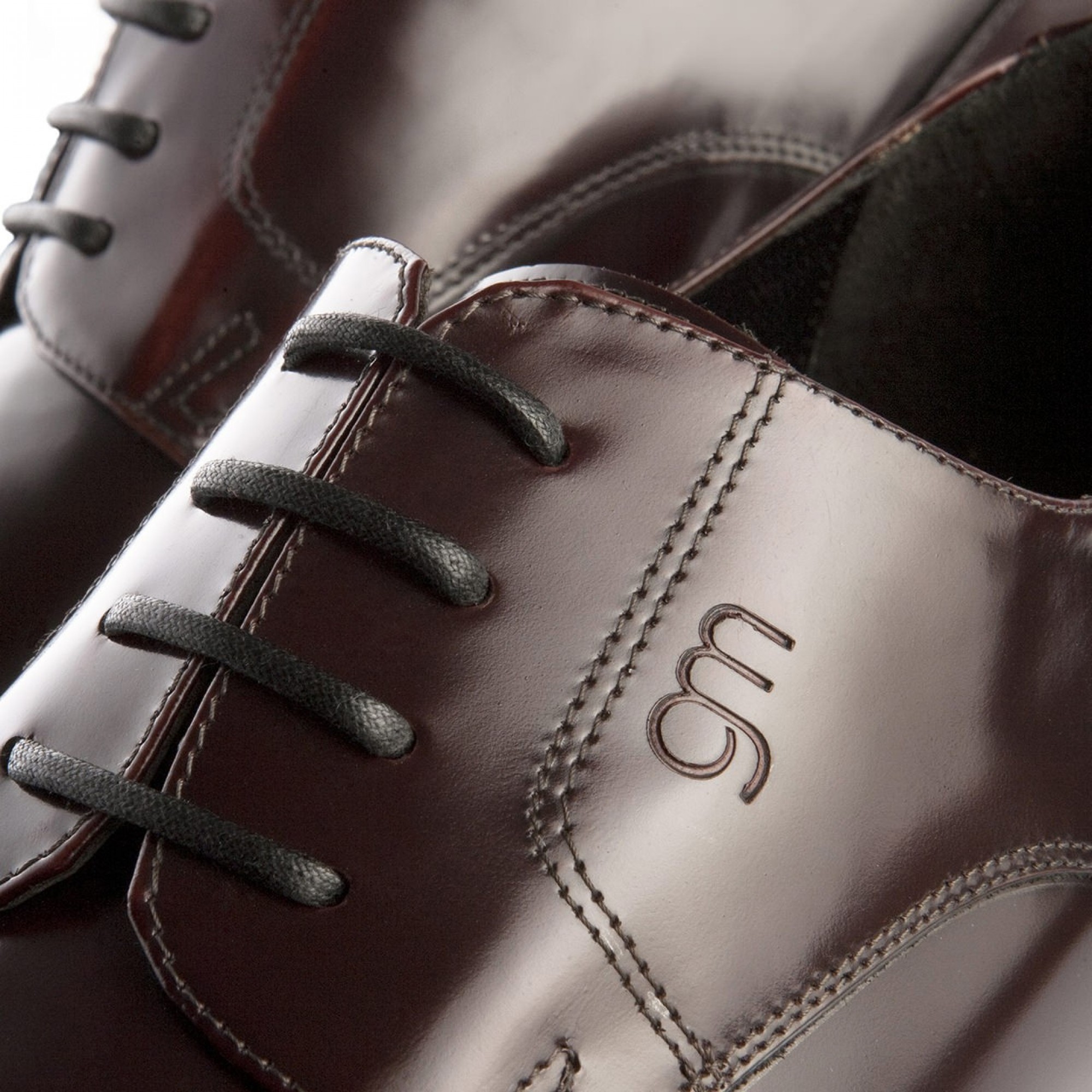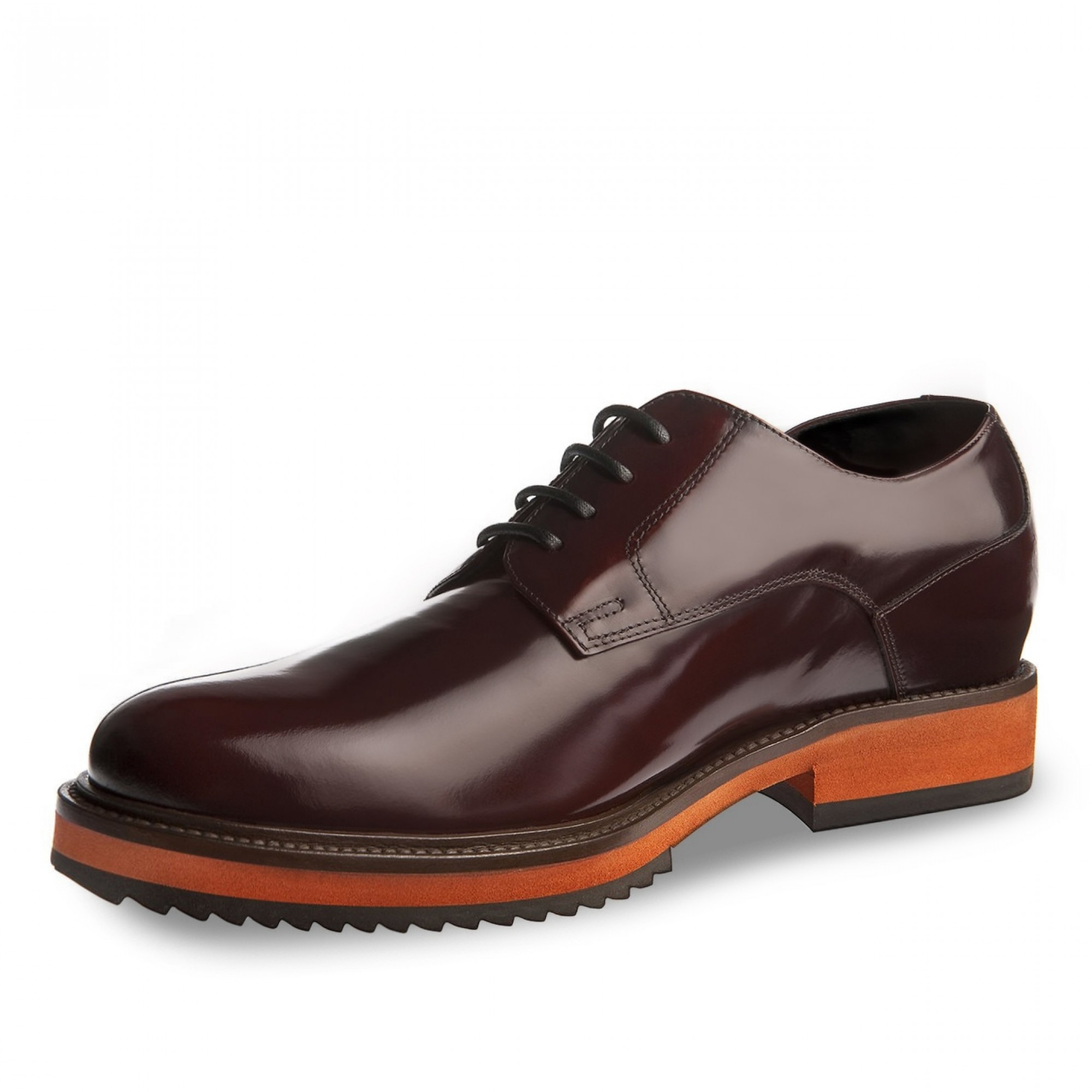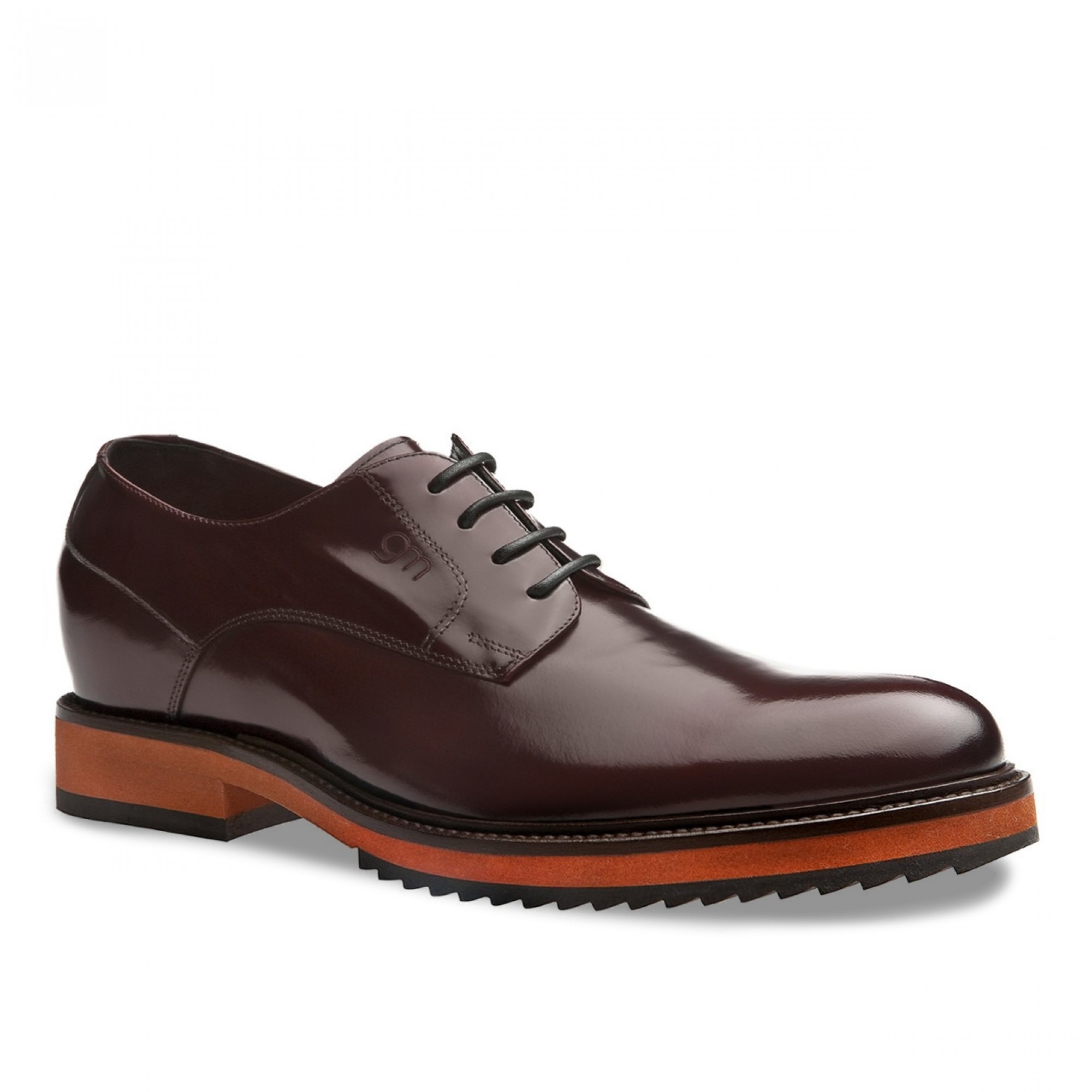 Upper in shiny bordeaux calfskin. Lining in soft goatskin. Insole and midsole in genuine leather. Cotton waxed shoe laces. Handcrafted, anti-slip rubber sole. Height increase: 2.4 in(6cm) or 2.75in(7cm) or 3.1in(8cm). Hand Made in Italy