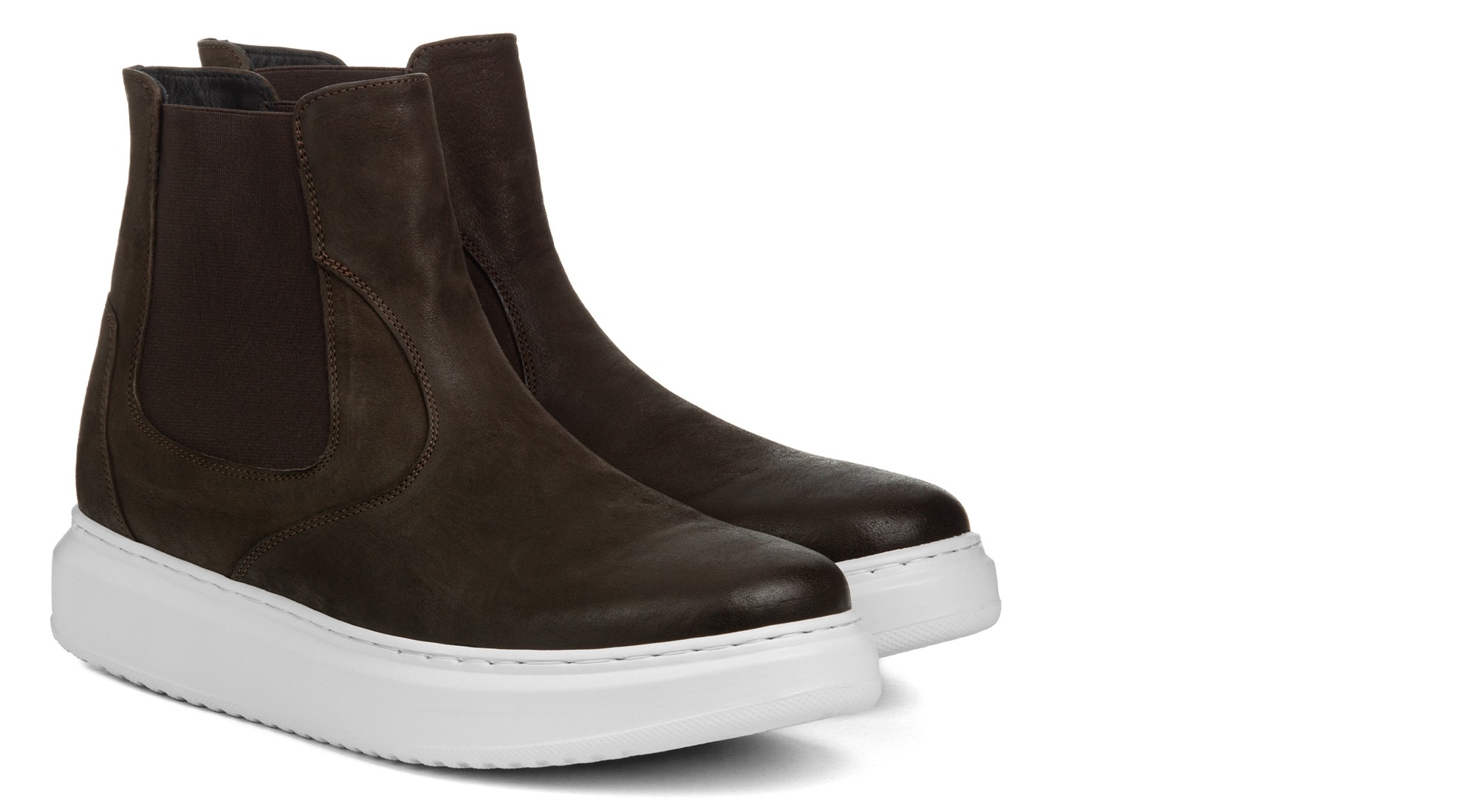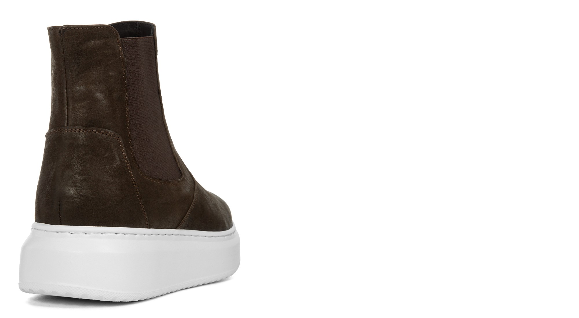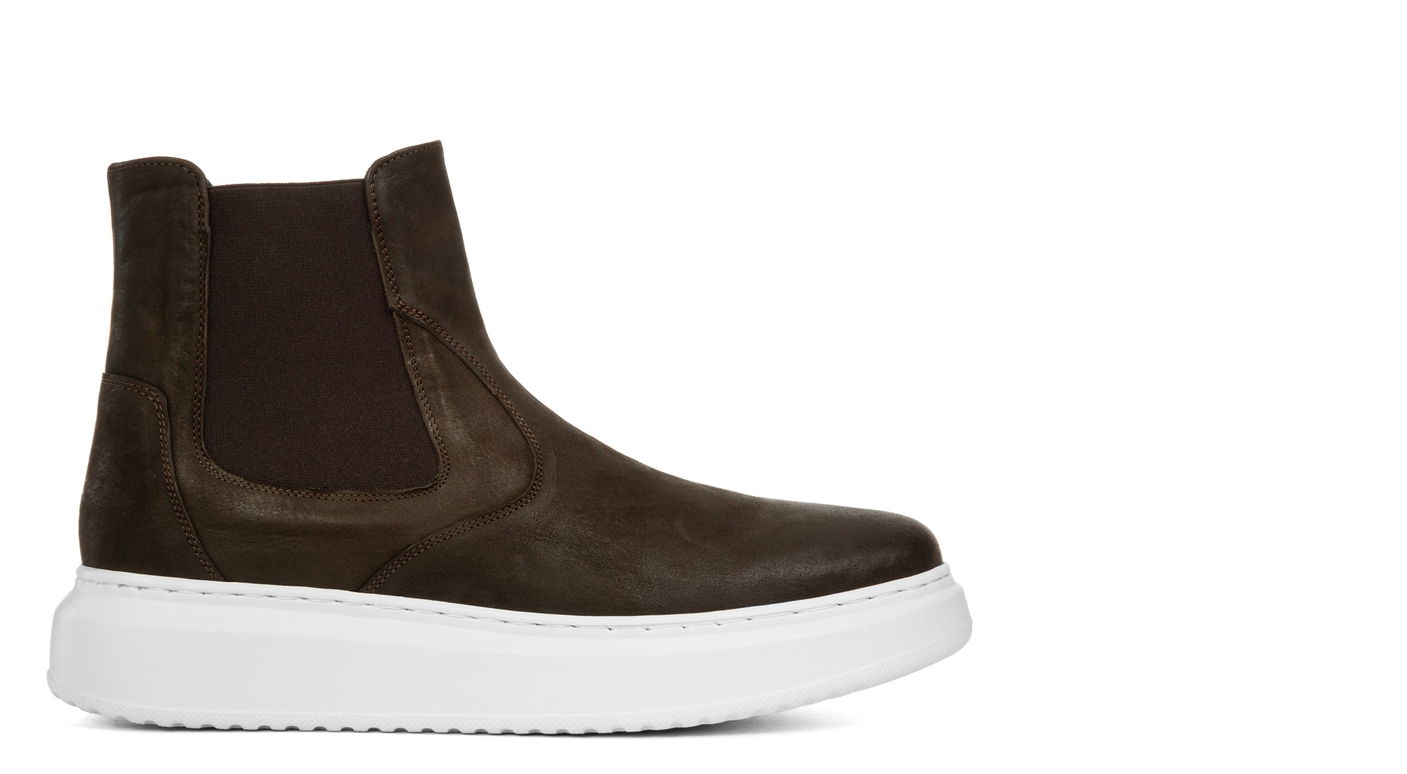 Hybrid Chelsea boot sneaker, extremely comfortable. Its standout feature is the premium brown nubuck upper, perfect for various occasions.