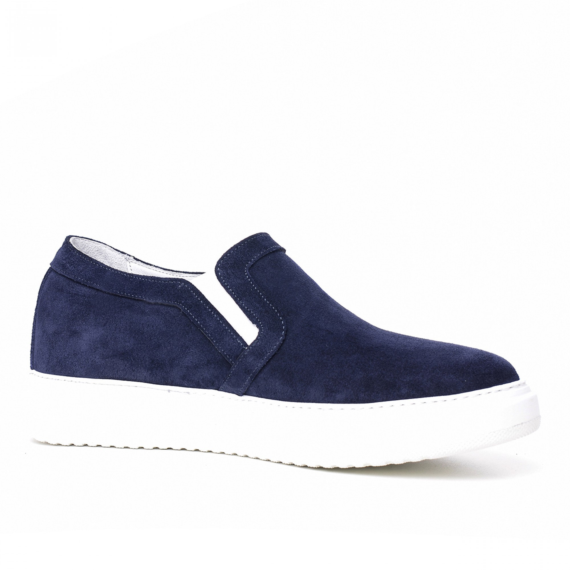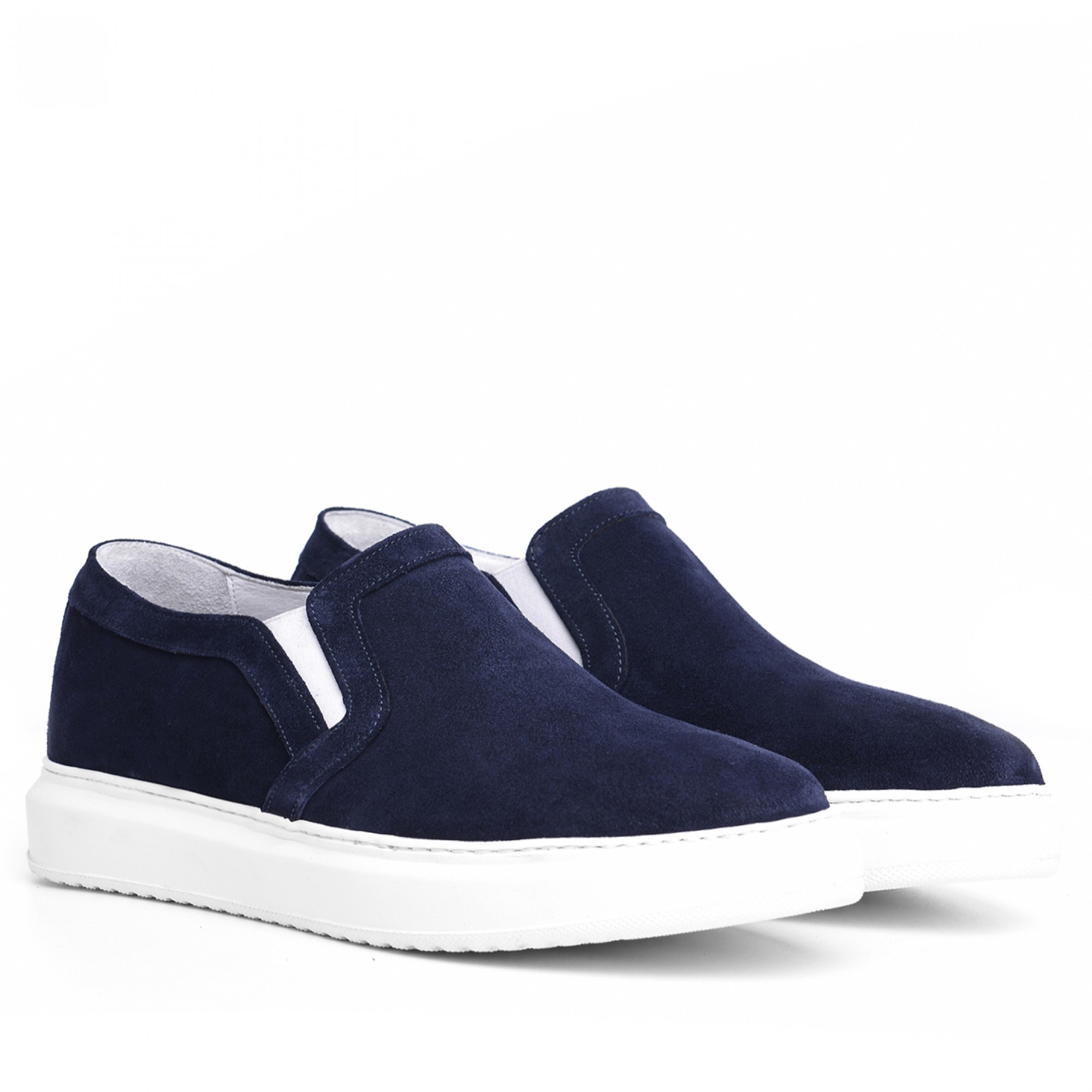 Height increasing Slip-on with upper in navy blue suede and comfortable rubber sole.