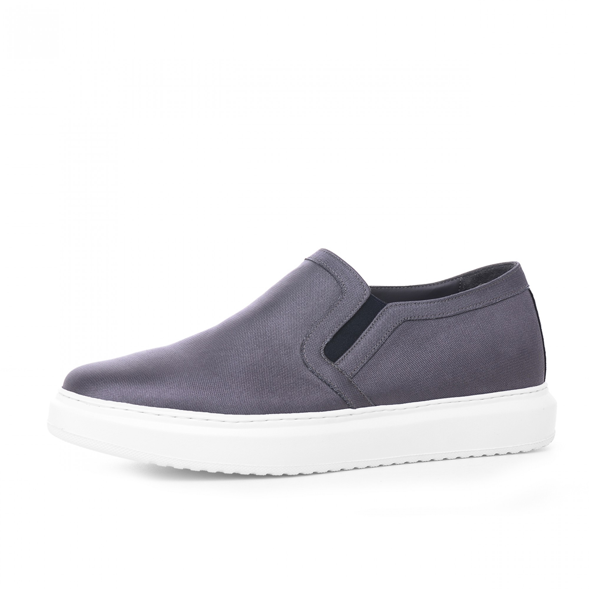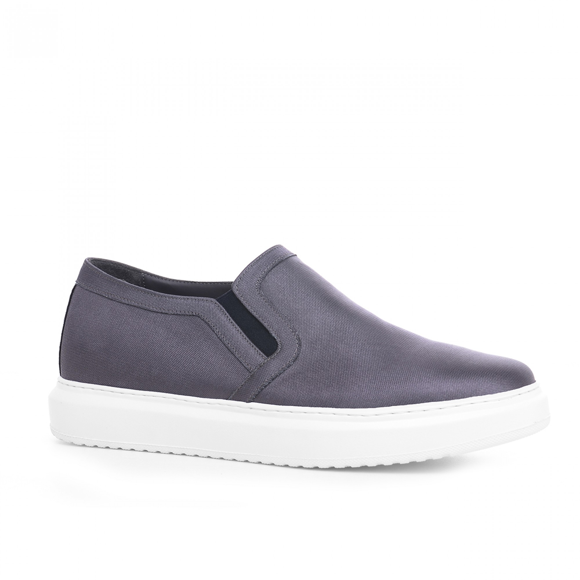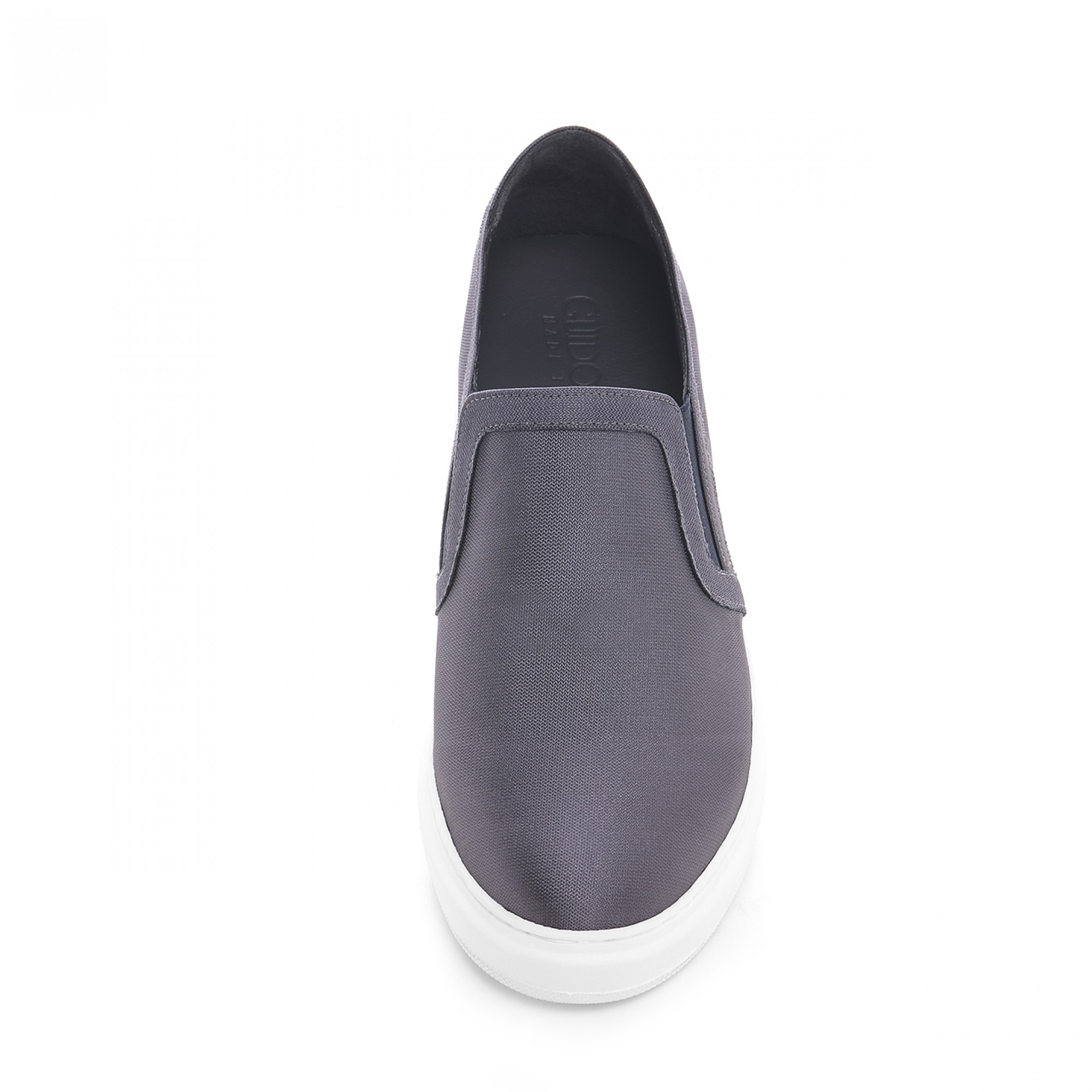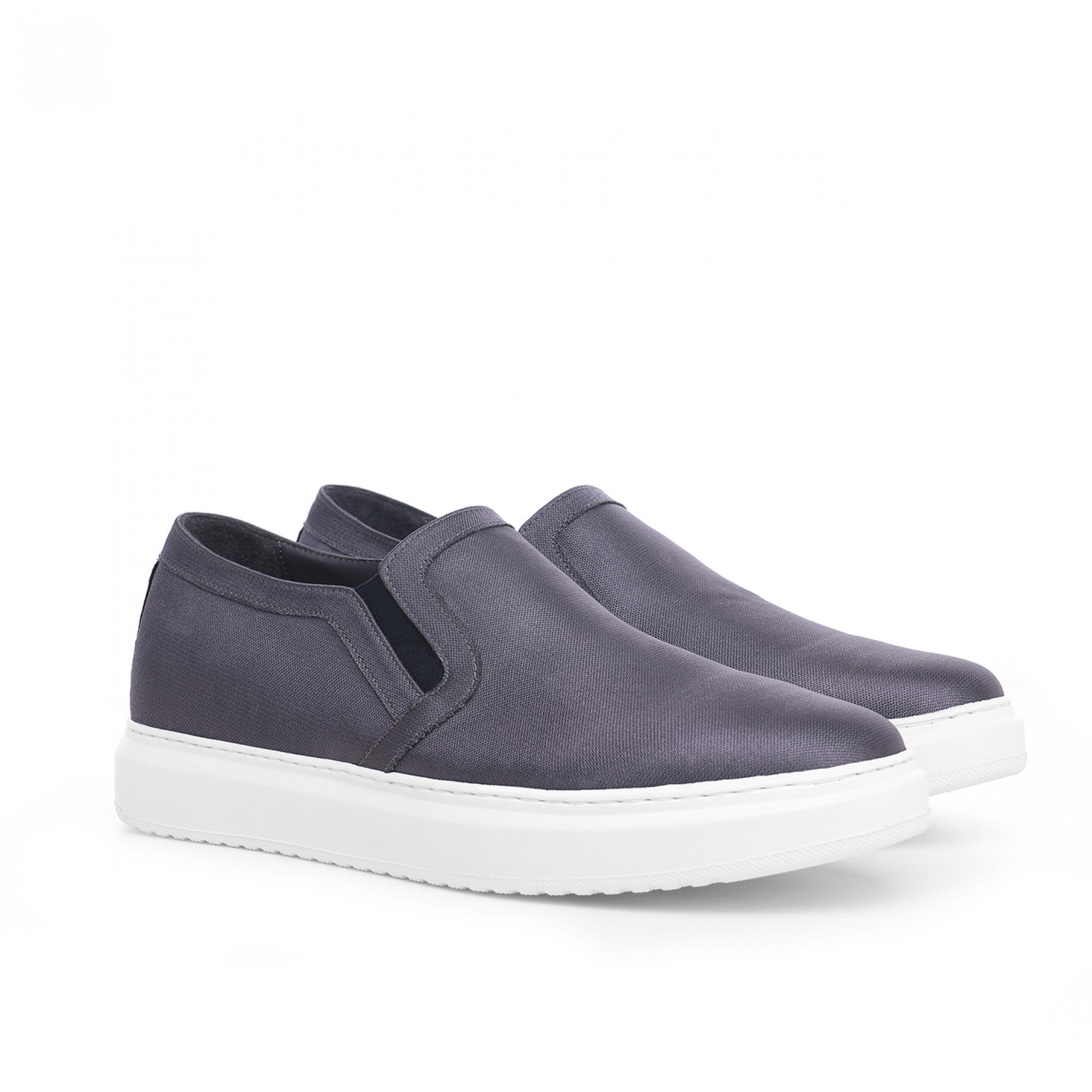 Elevator slip-on with upper in grey technical fabric, inner lining in soft leather and comfortable white rubber sole.