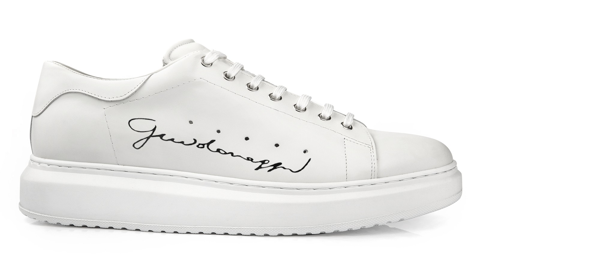 Alba is a sporty trainer with an iconic design that can increase the height of the wearer from 2.4 (6 cm) up to 3.1 inches (8 cm) in total comfort and secrecy. The GM artisans also allow the possibility to customize the sneakers by adding the written GuidoMaggi on the sides of the upper. Handmade in Italy.