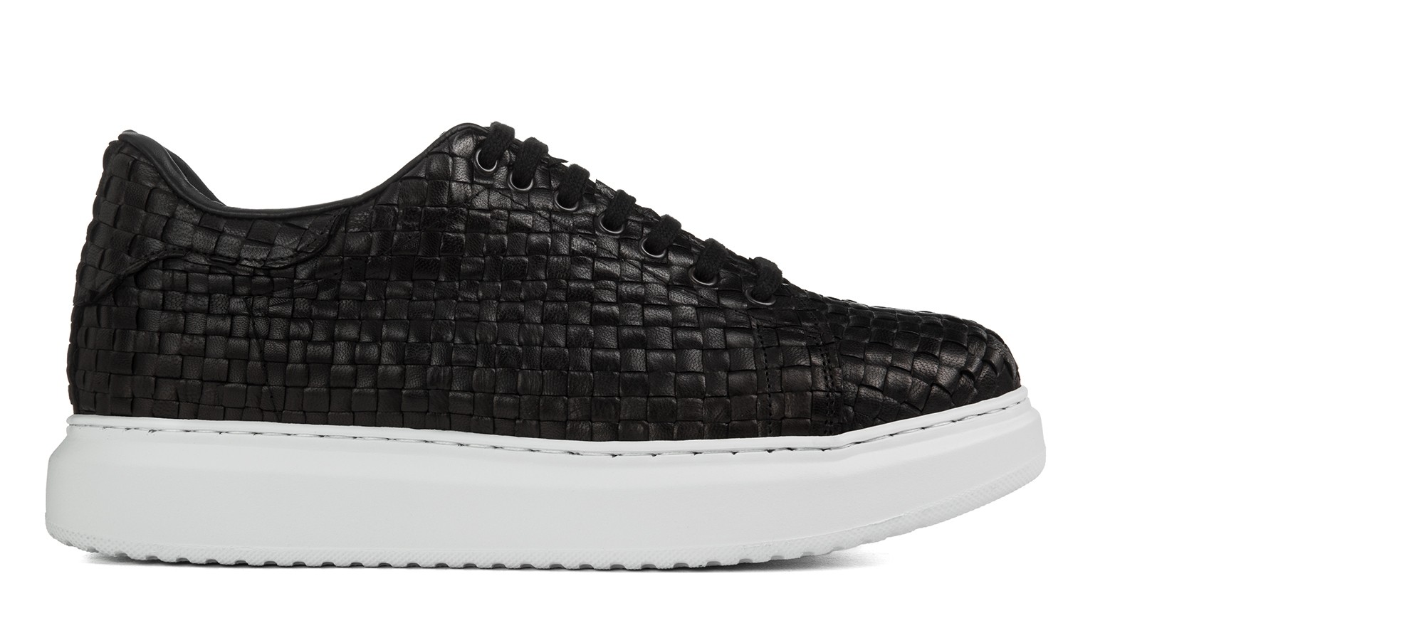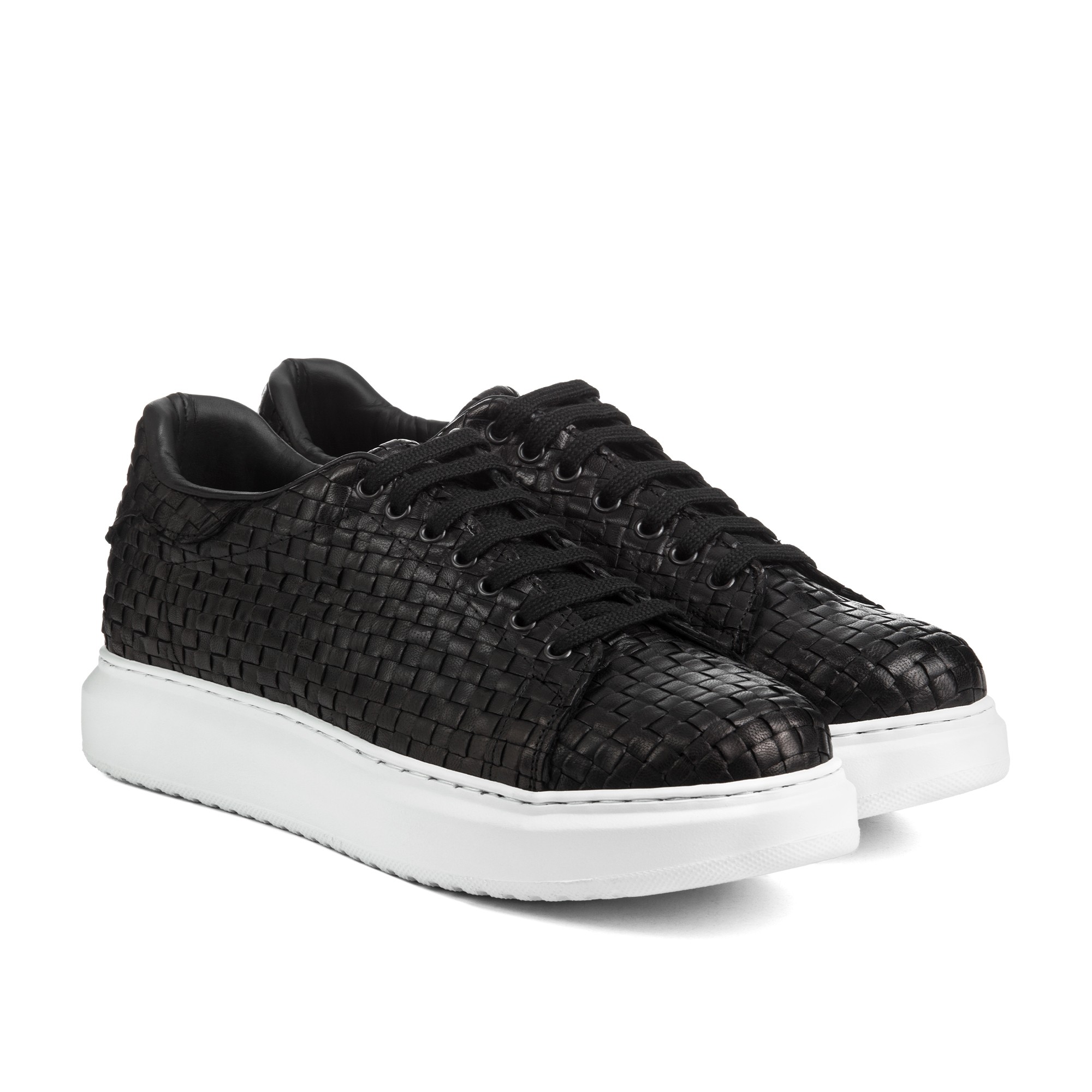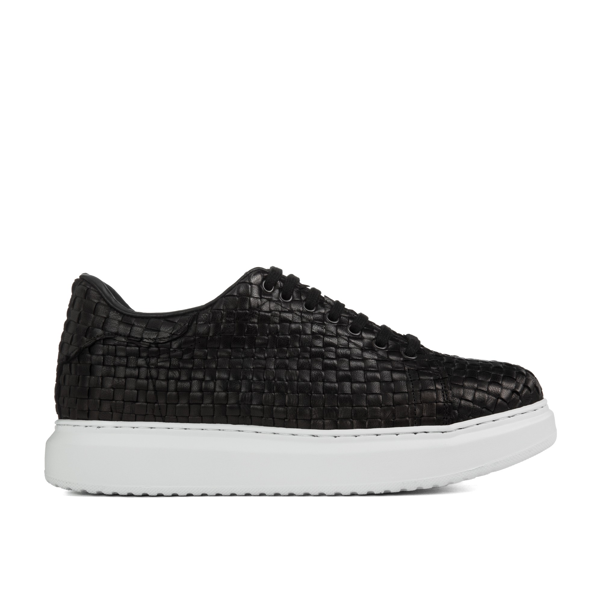 Luxury elevator sneakers with upper in black calfskin featuring an elegant checked pattern and sole made of natural rubber which provides maximium comfort.