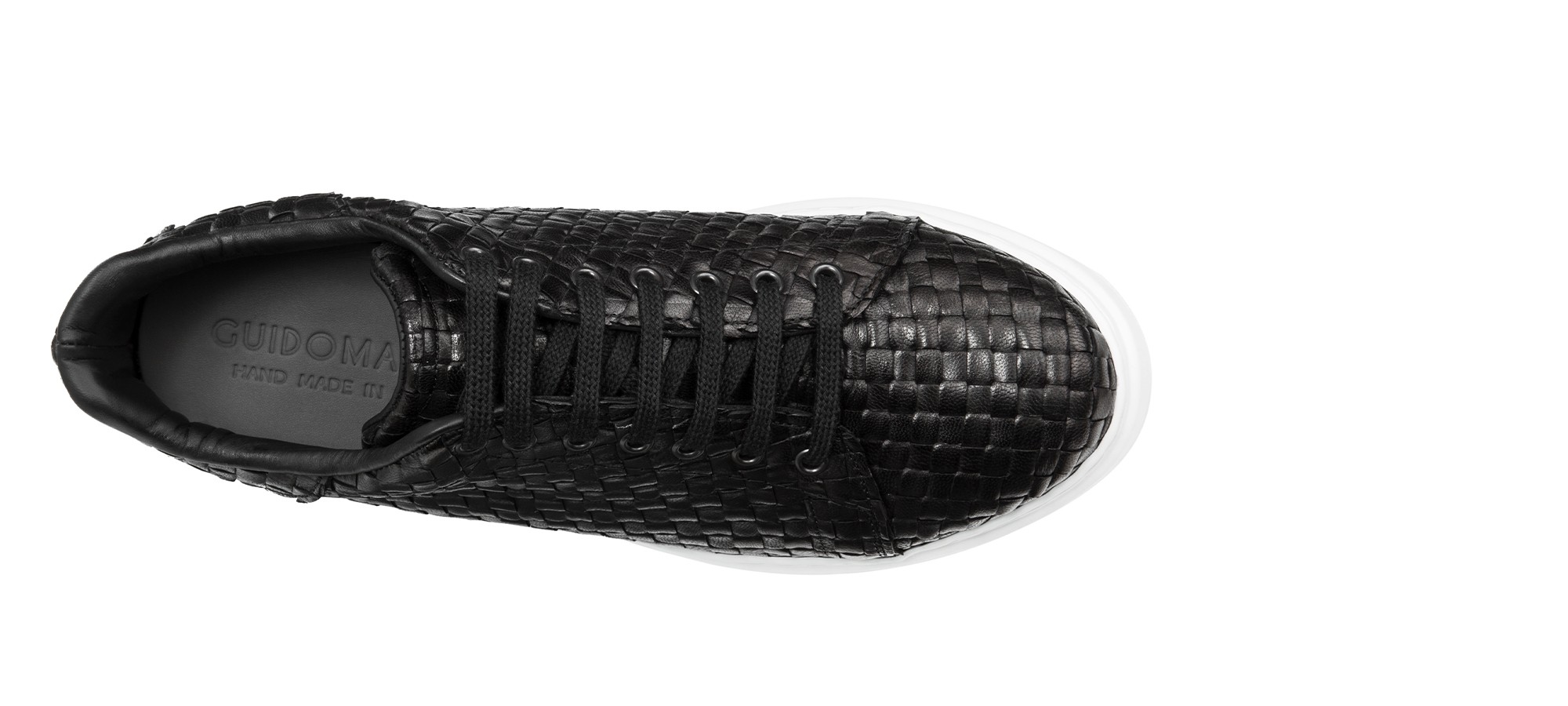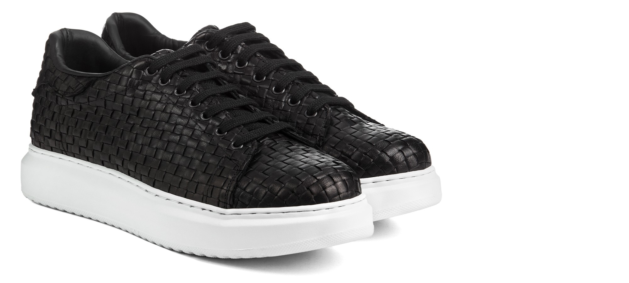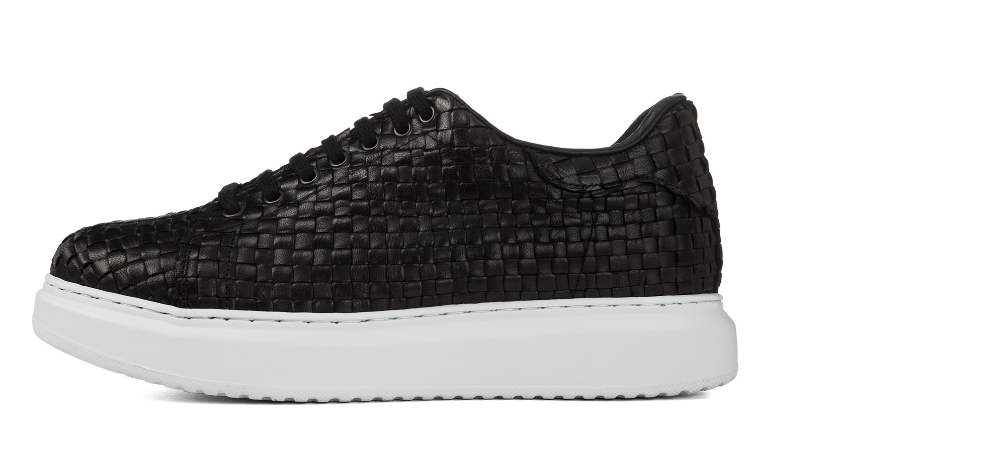 Luxury elevator sneakers with upper in black calfskin featuring an elegant checked pattern and sole made of natural rubber which provides maximium comfort.