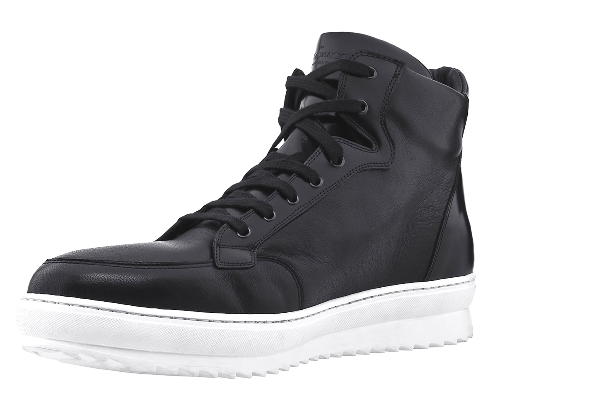 Upper in full grain nappa leather and shiny black calfskin. Lining in soft goatskin. Insole in genuine leather. Lightweight high quality rubber outsole anti-slip. Height increase: 2.4in(6cm), 2.75in(7cm), 3.1in(8cm) or 4 in(10cm). Hand Made in Italy