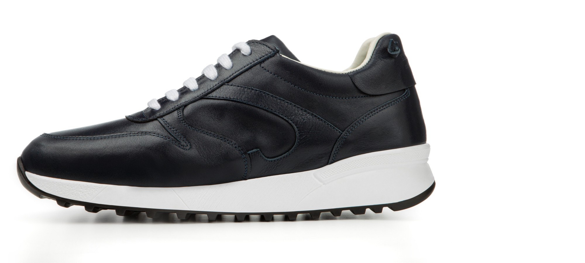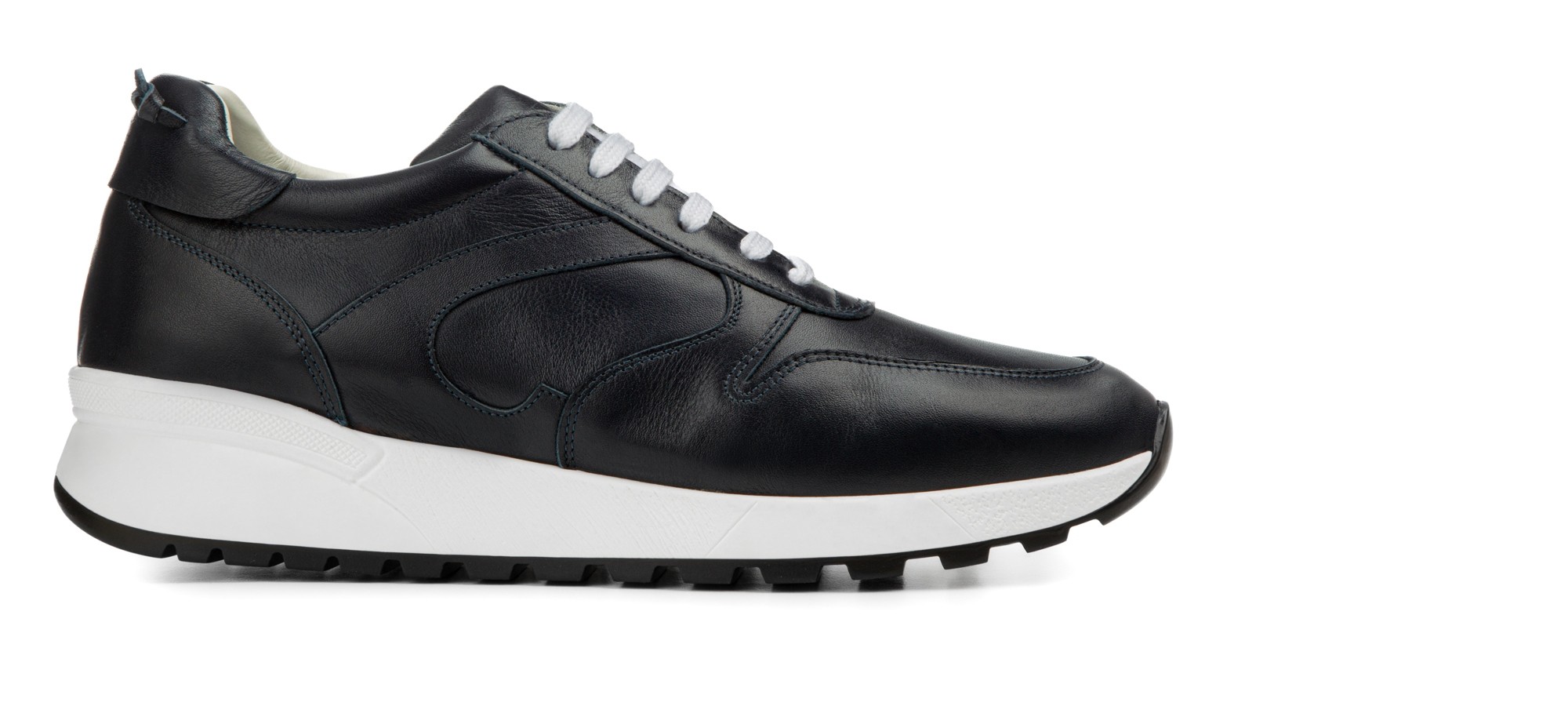 Luxury elevator sneakers, handcrafted, characterized by the refined upper in midnight blue full-grain calfskin. Ultra-light natural rubber sole. A ready-to-wear model designed for the city that can enhance any outfit and will increase your height up to 3.1 inches (8 cm).