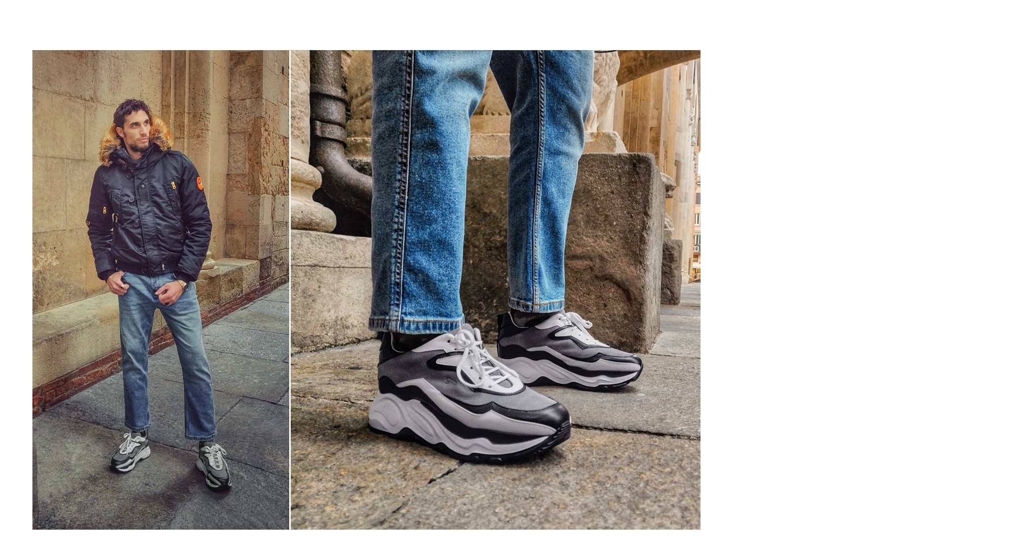 Trendy oversized sneakers with upper made of white and black calfskin and gray suede details. The two-tone chunky sole is in extralight rubber.