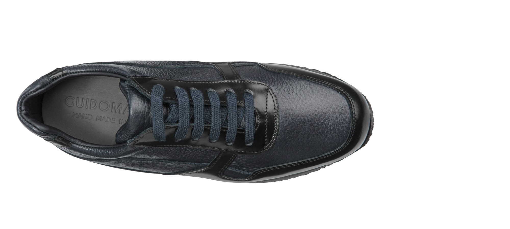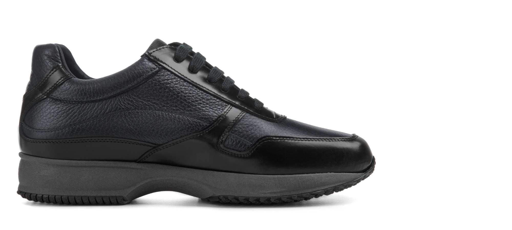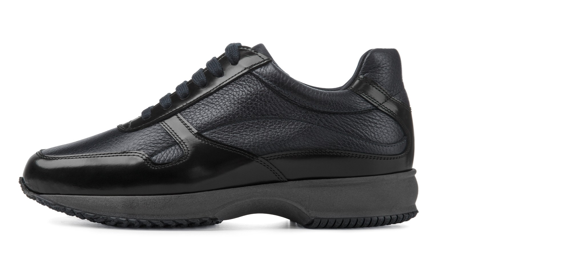 Upper in textured full grain leather and shiny black calfskin. Lining in soft goatskin. Insole in genuine leather. Lightweight high quality rubber outsole anti-slip. Height increase: 2.4in(6cm), 2.75in(7cm), 3.1in(8cm) or 4 in(10cm). Hand Made in Italy