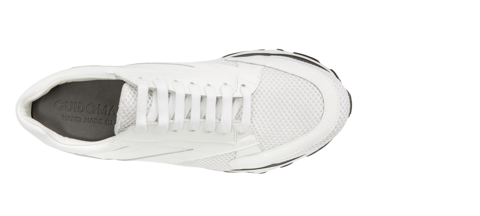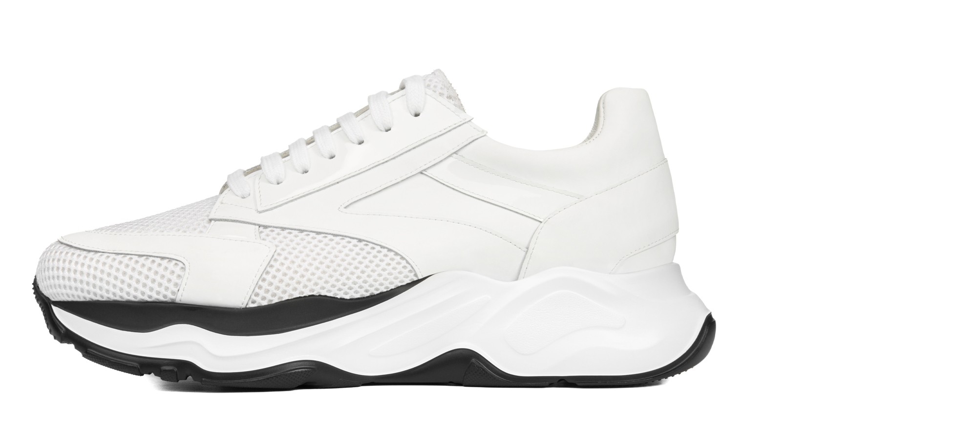 Explore our oversized sneakers model, featuring an extra-light and super-soft rubber sole. We've enhanced it with a lightweight and breathable mesh, characterized by an open-knit structure, perfect for a sporty-chic style. The details in white Tuscan full-grain leather add a touch of elegance.