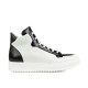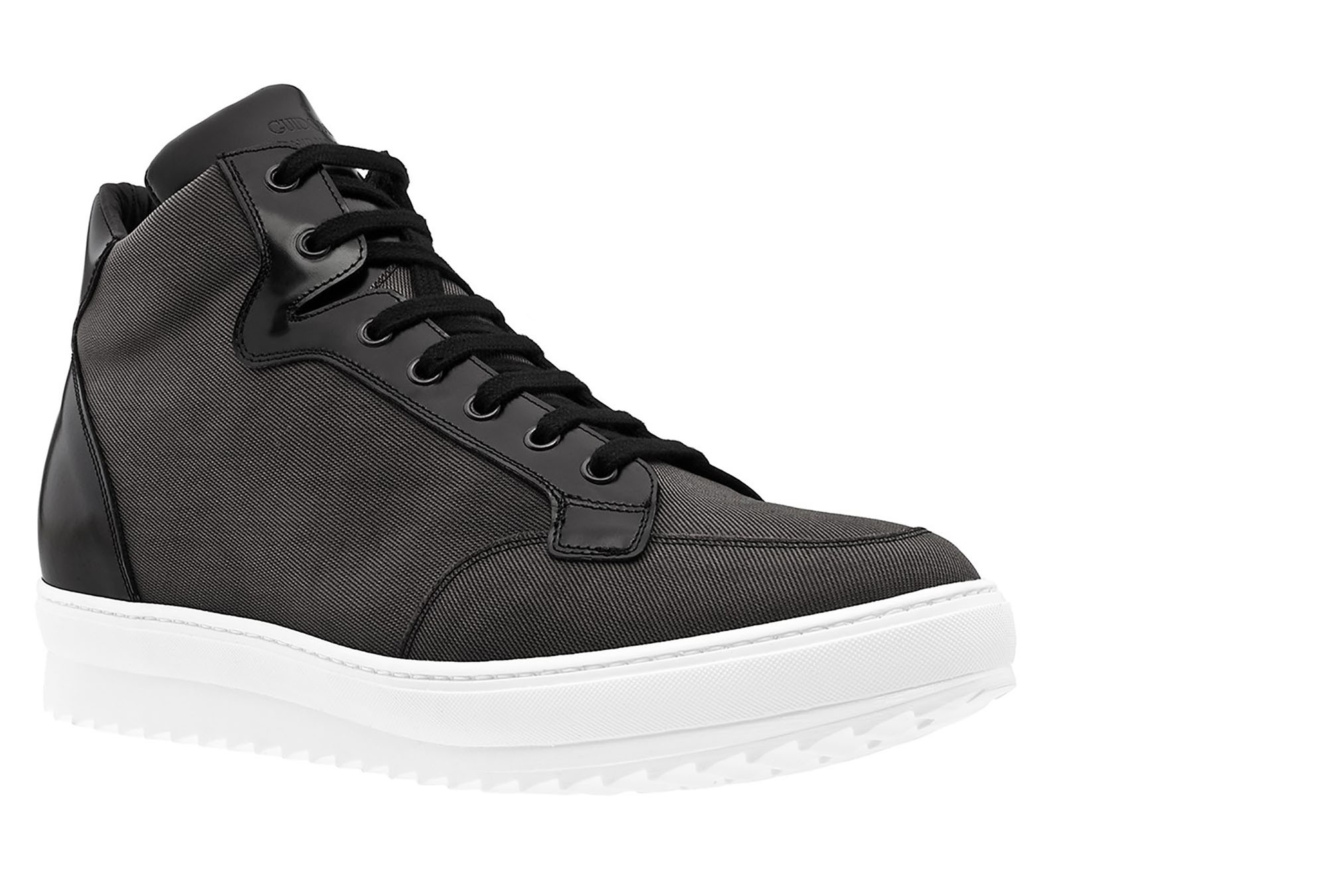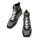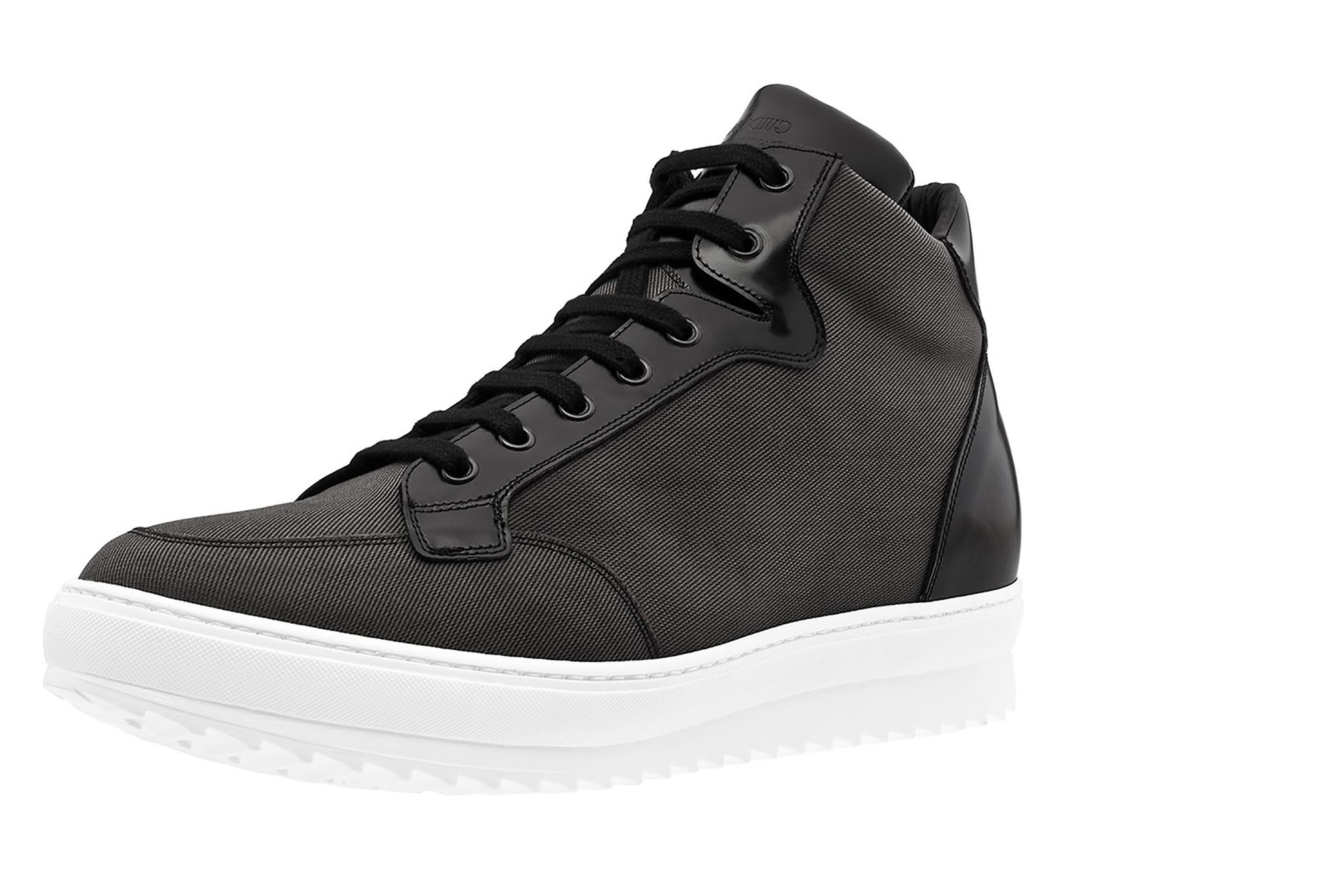 Upper in grey technical fabric and shiny black calfskin. Lining in soft goatskin. Insole in genuine leather. Lightweight high quality rubber outsole anti-slip. Height increase: 2.4in(6cm), 2.75in(7cm), 3.1in(8cm) or 4 in(10cm). Hand Made in Italy
