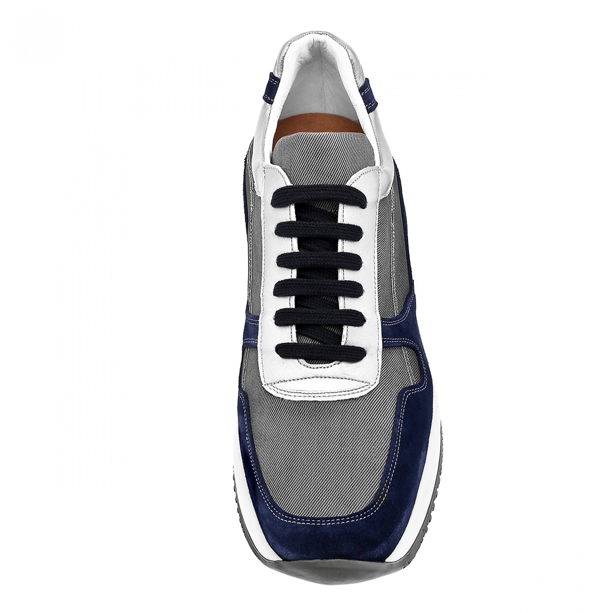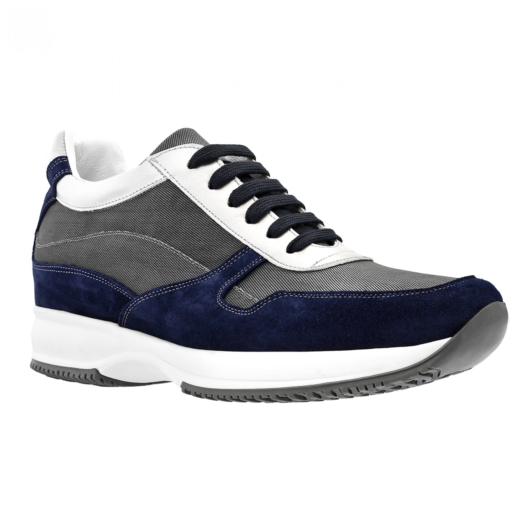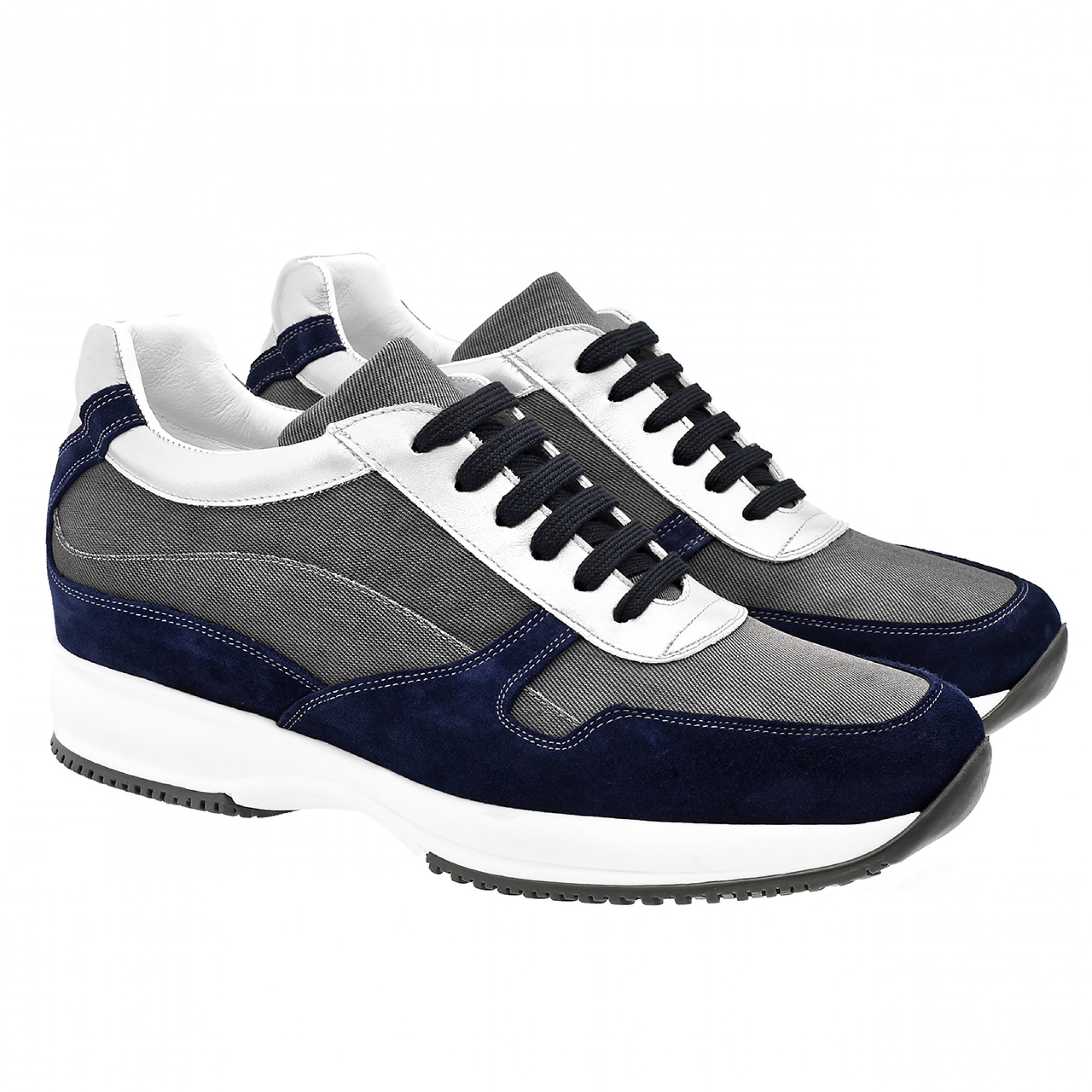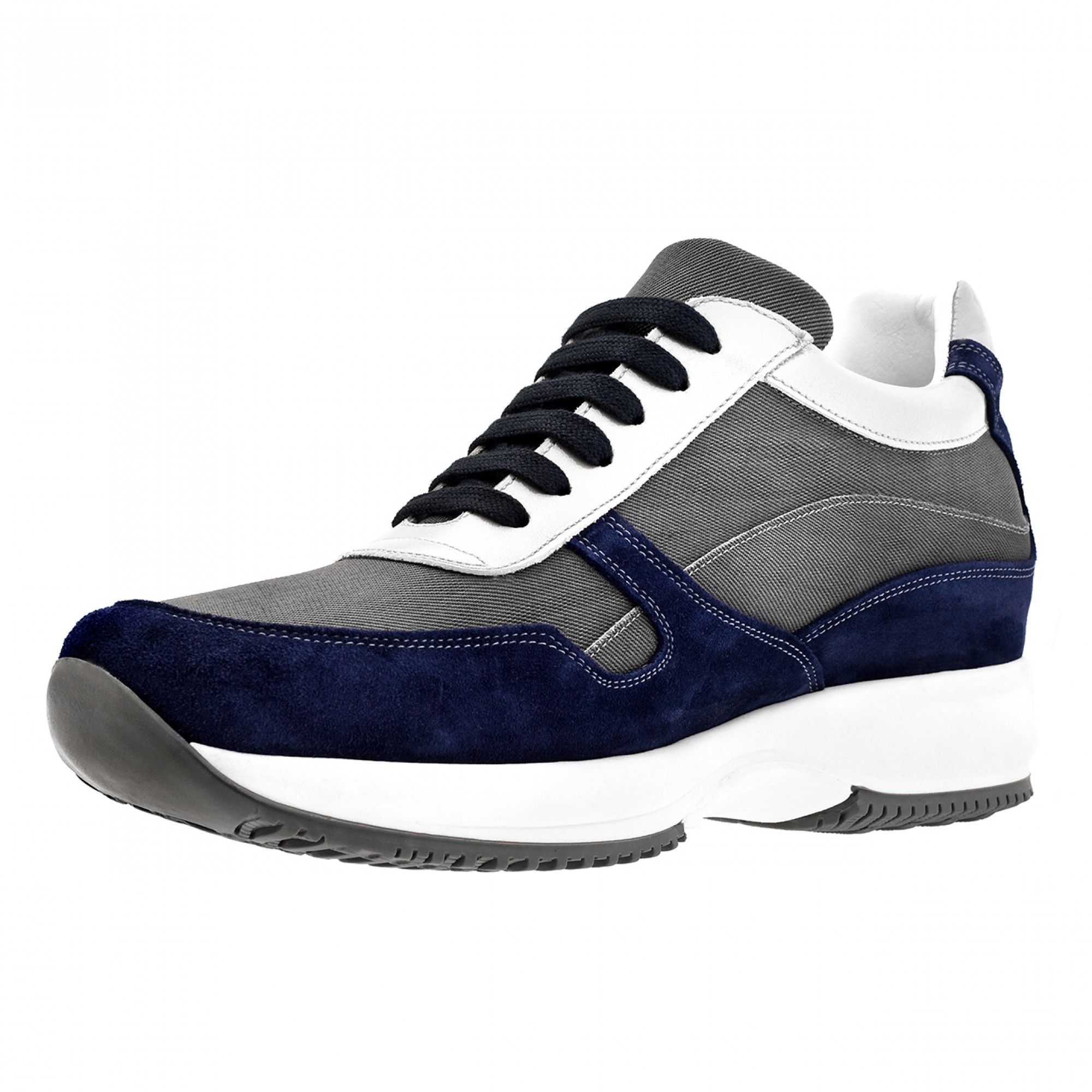 Upper in suede calf leather, full grain pearl grey leather and technical fabric. Lining in soft goatskin. Insole in genuine leather. Lightweight high quality rubber outsole anti-slip. Height increase: 2.4in(6cm), 2.75in(7cm), 3.1in(8cm) or 4 in(10cm). Hand Made in Italy
