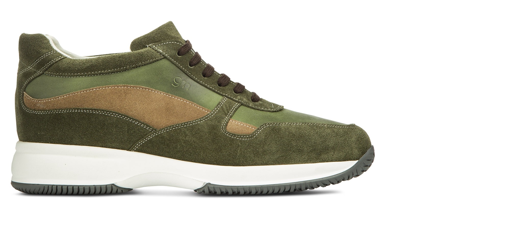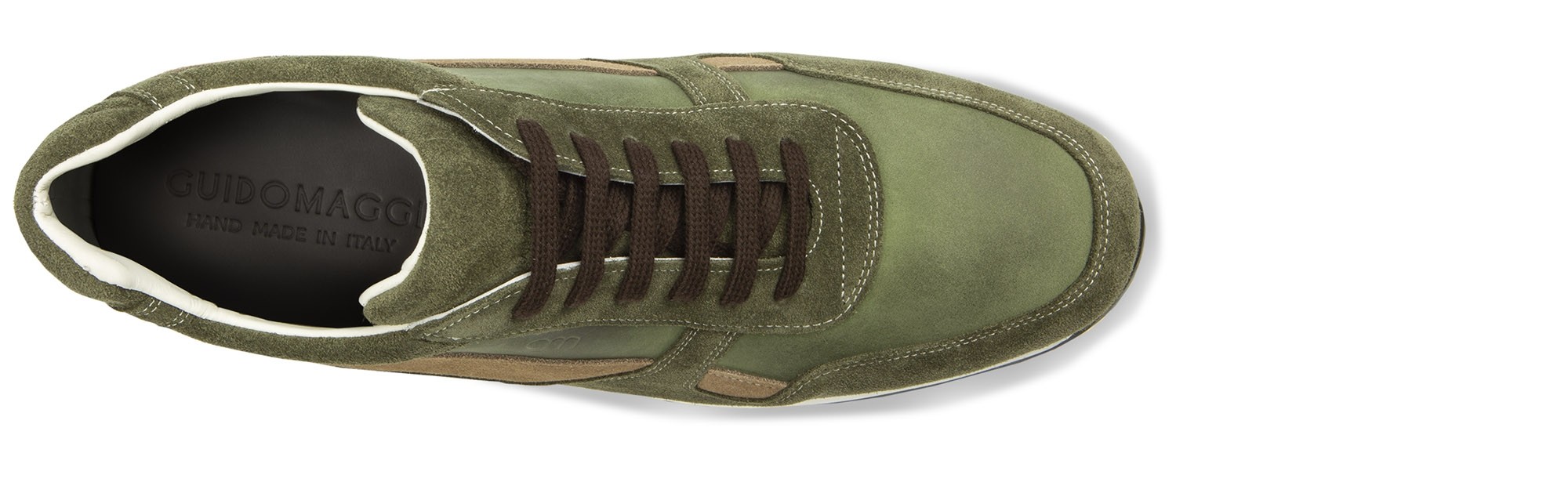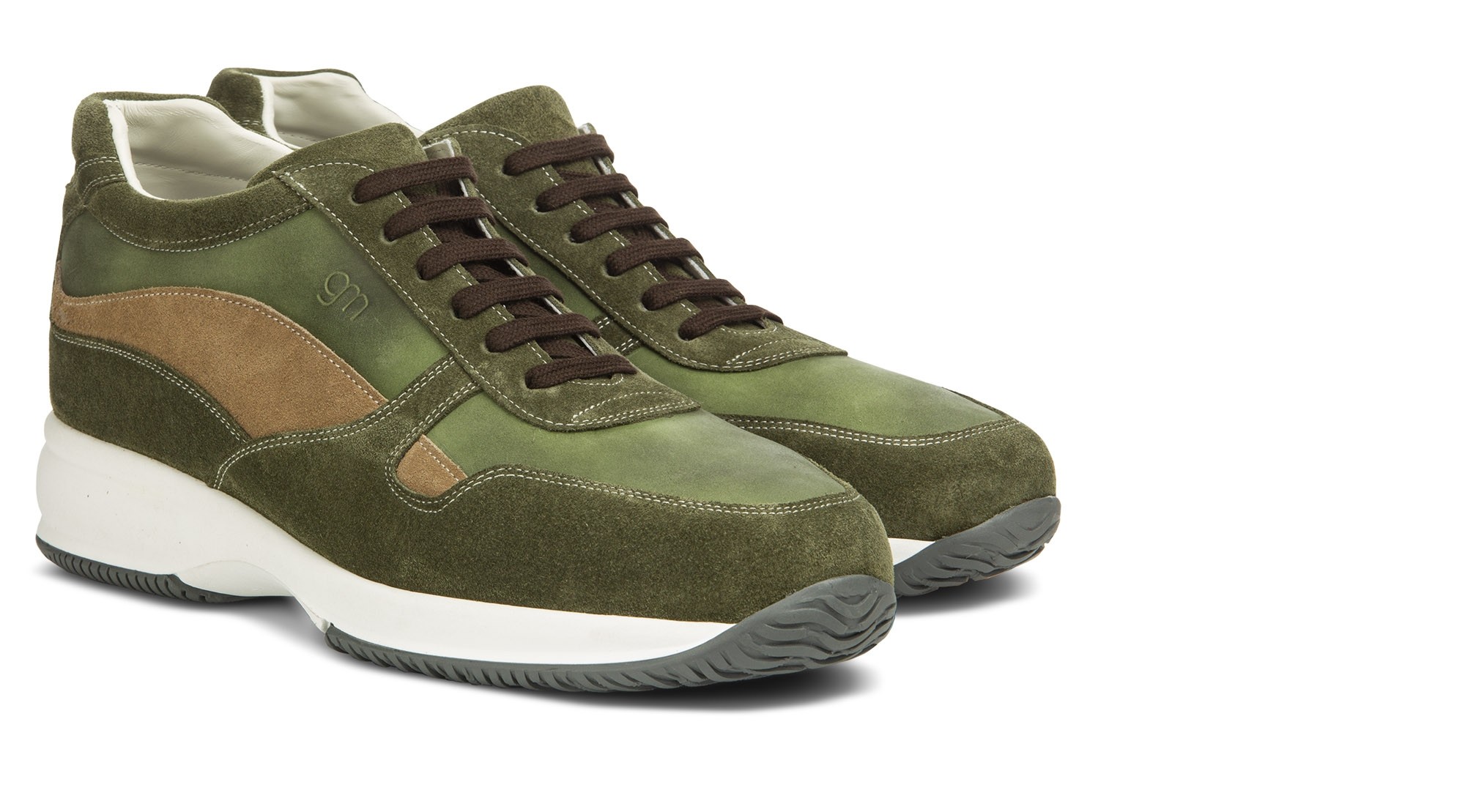 Upper in full grain leather and suede green burnished. Lining in soft goatskin. Insole in genuine leather. 2 pairs of cotton shoe laces. Lightweight high quality rubber outsole anti-slip. Height increase: 2.4 in(6cm), 2.75 in(7cm), 3.1 in(8cm) or 4 in(10cm). Hand Made in Italy