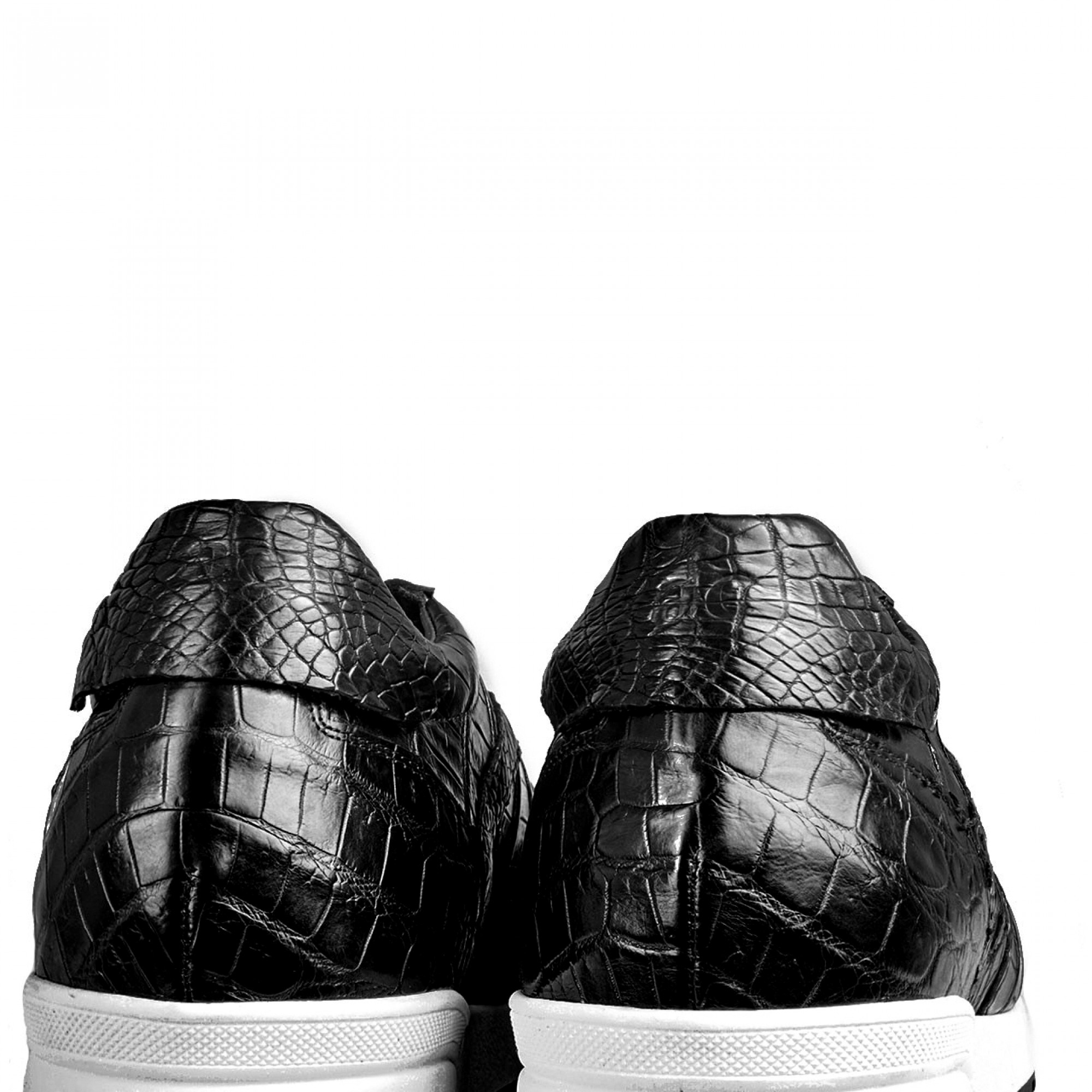 Chic casual elevator sneakers handcrafted with upper in fine Hermès black crocodile leather and ultra-light natural rubber sole.